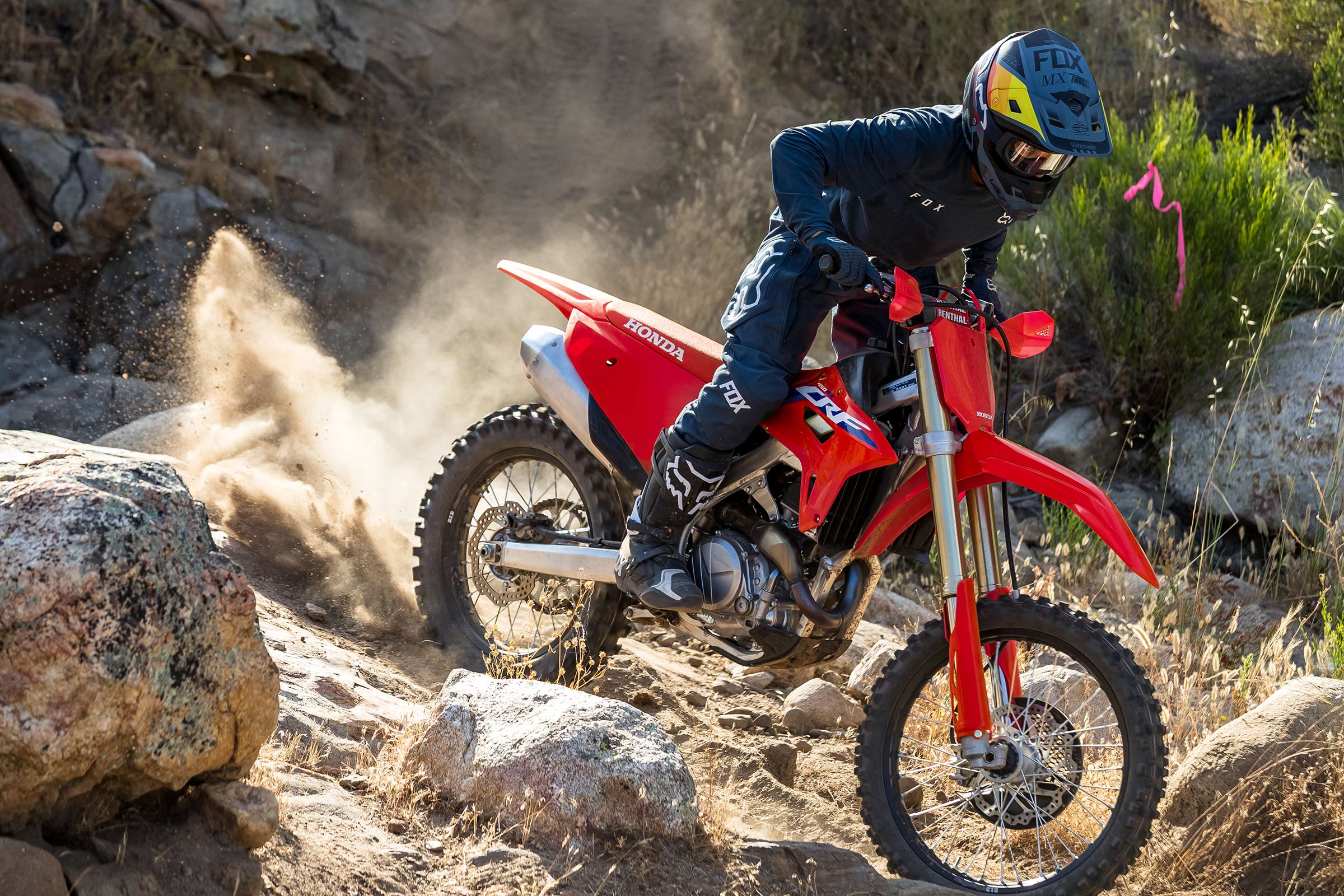 Having six speeds in the CRF450X’s transmission compared to an MX bike’s typical five gives you more choice, and makes this versatile bike even more versatile. You have a gear for everything from east-coast rock crawling to wide-open Baja blasts.