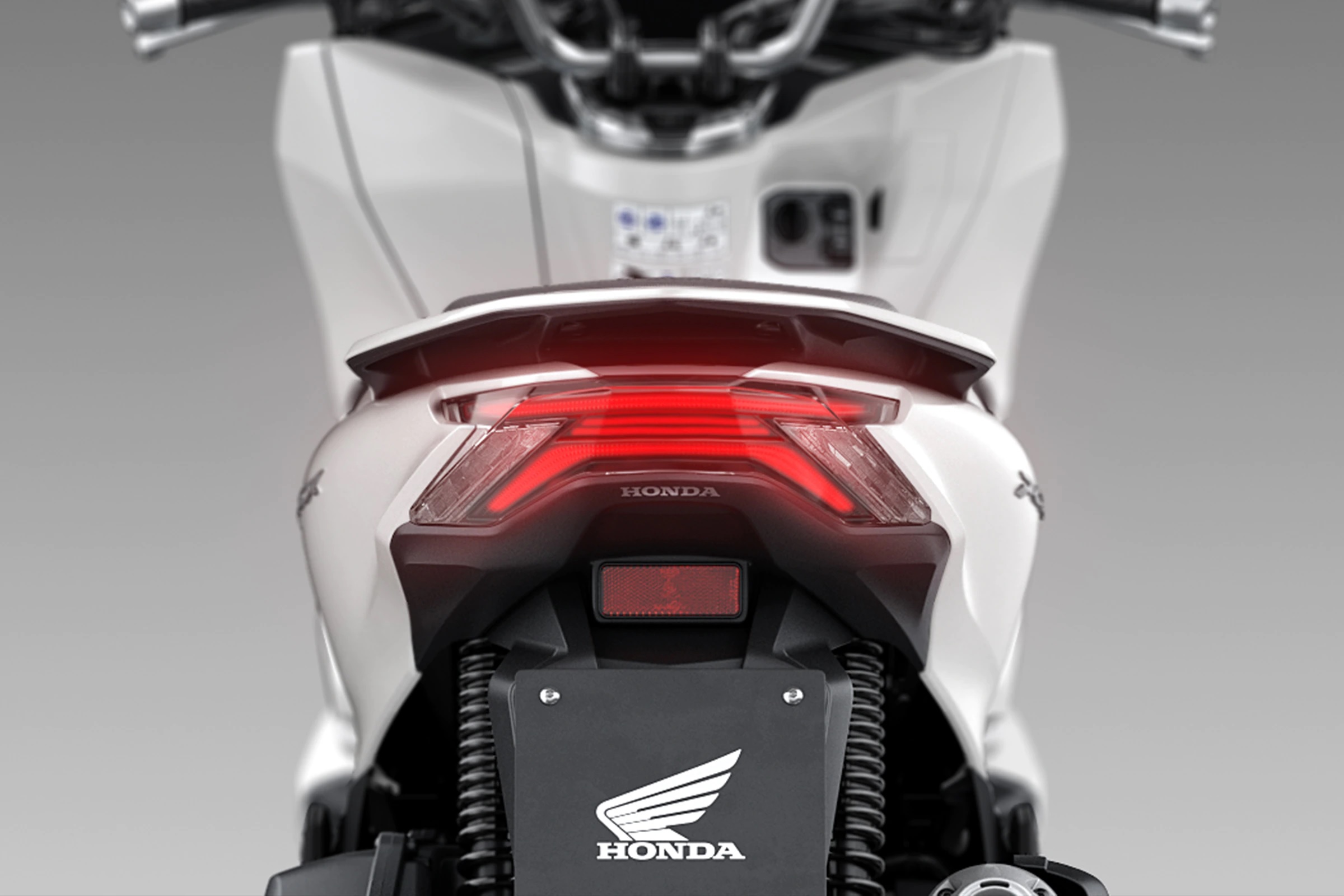 Take a look at the PCX’s “X”-shaped tail lamp. It used multi-optics technology, emitting bright light in an eye-catching design.