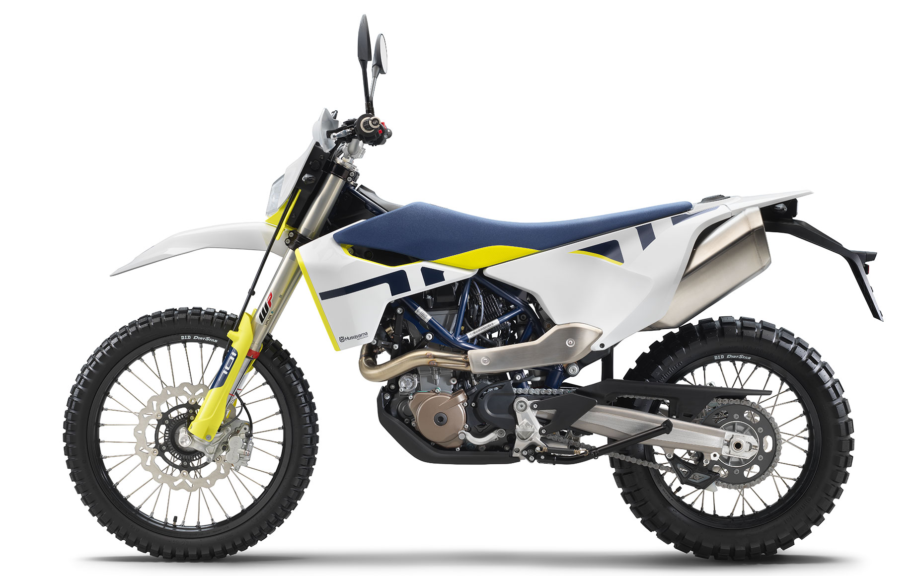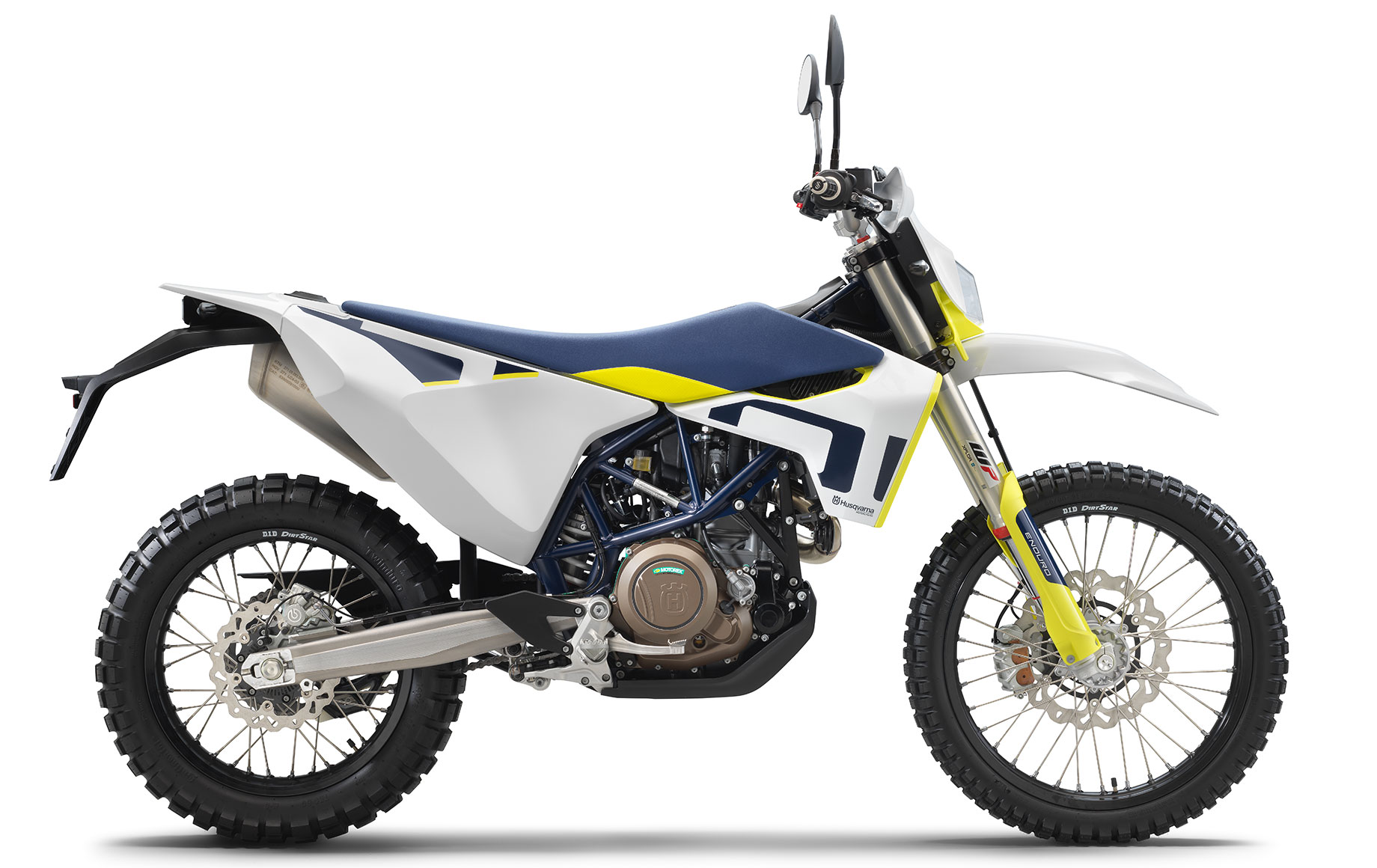 For 2021, the 701 Enduro is available exclusively in Husqvarna’s company colors of white with yellow and blue details.