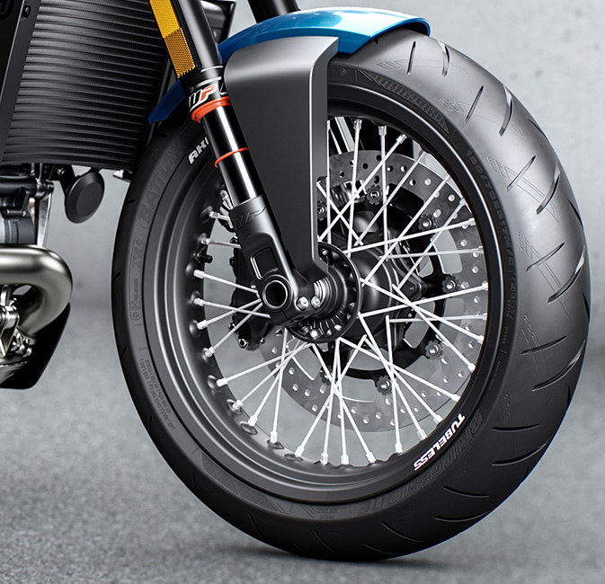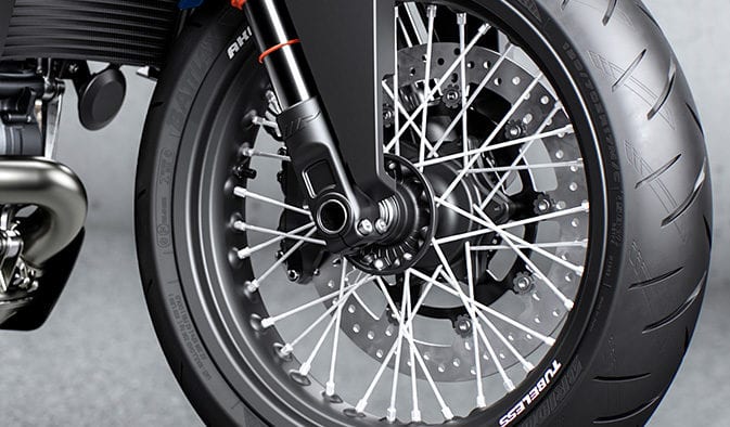 Other features include Brembo brakes, WP Apex suspension, Bridgestone Battlax tires, LED lighting, and a head-turning, stripped-down and futuristic aesthetic.