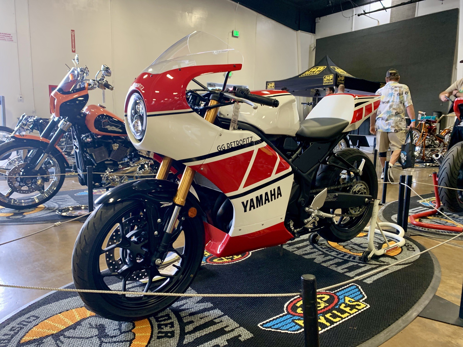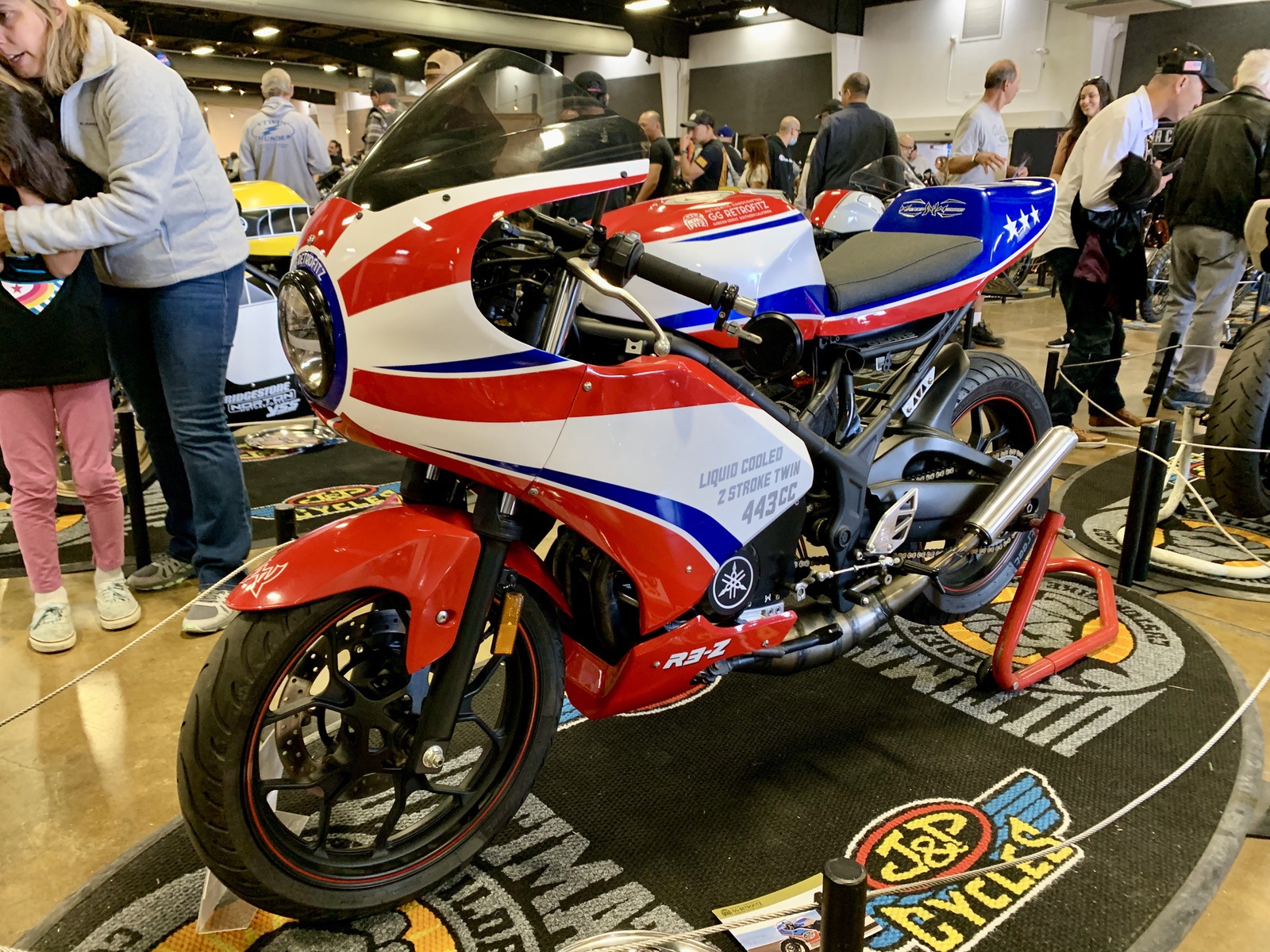 These are actually current generation Yamaha R3’s! A bunch of gearheads were as surprised as I was. These are body kits that bolts on directly to the R3. You can actually buy these body kits from GG Retrofitz and customize your own.