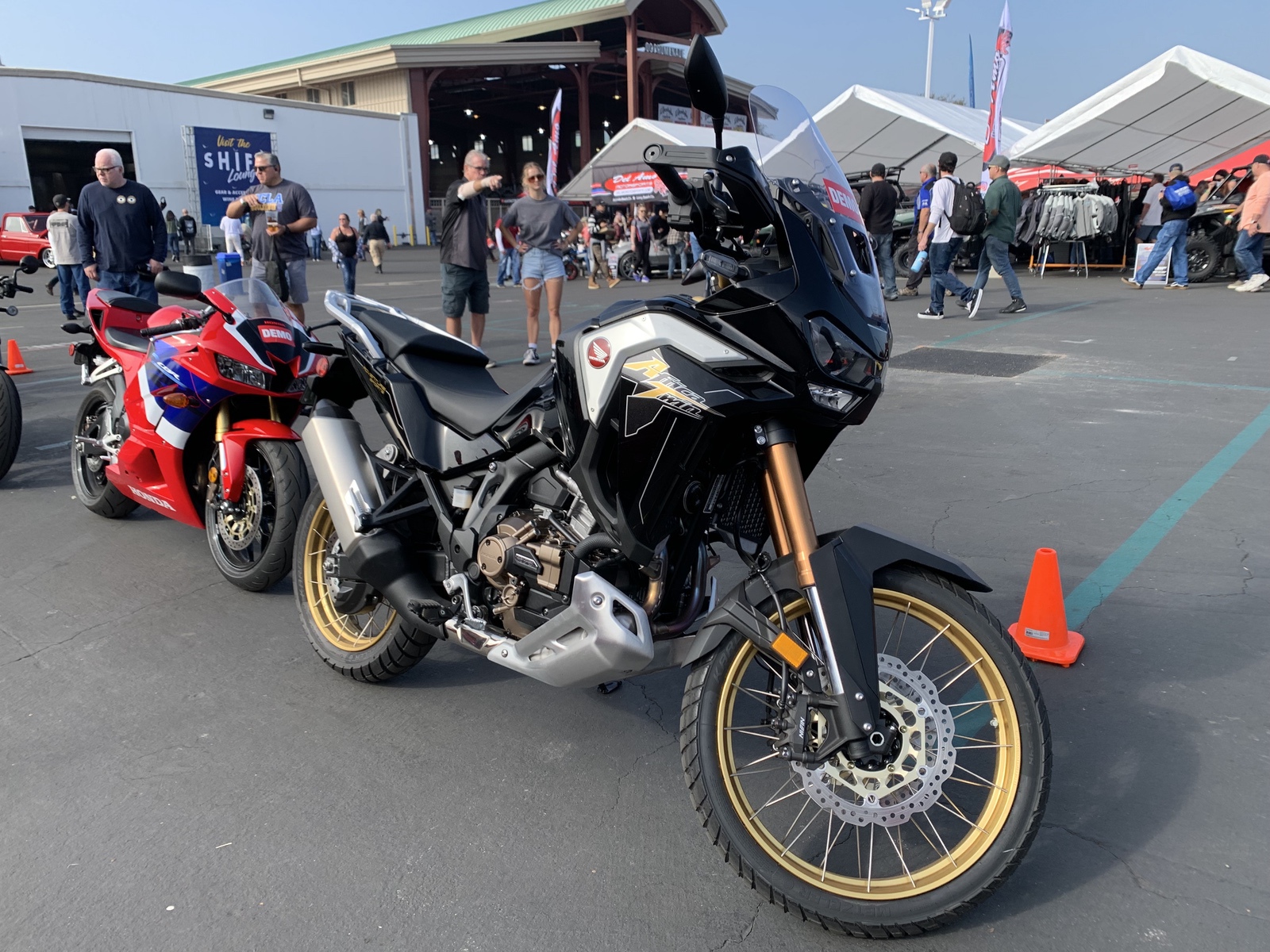 There are pros and cons to both structures, but I like the outdoor event experience better overall. I just wish the brands had show bikes in the tent as well (to drool over) and extra demo bikes to ride, instead of show and demo bikes being the same.