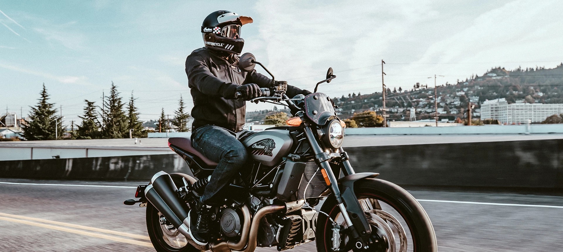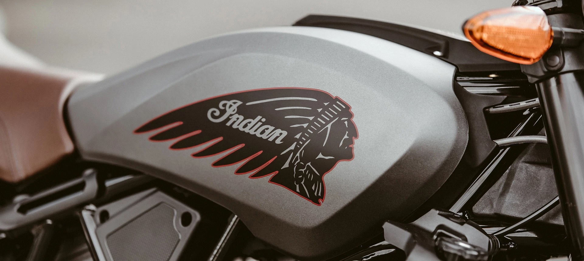 Classic Indian Motorcycle headdress logo with red pinstripe, Titanium Smoke paint, and a premium rally console badge delivers unmatched scrambler style.