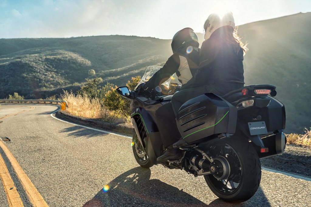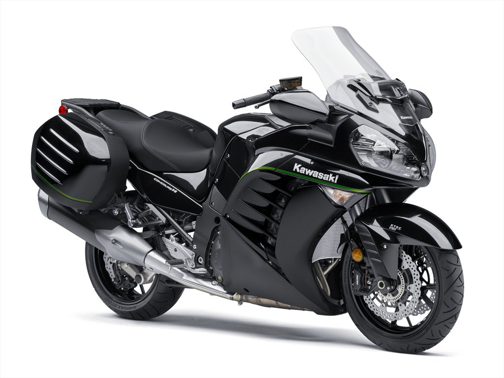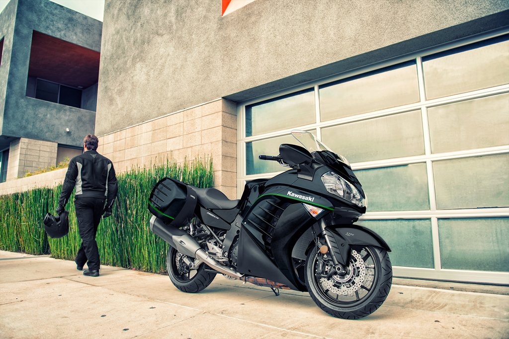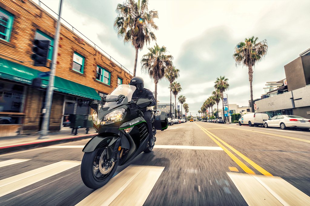 The Concours 14 continues using the 2020 model’s equipment, with dual throttle valves (standard and ram air), Kawasaki Traction Control, Kawasaki Advanced Co-Active Braking (unified braking), KIPASS (proximity key sensing), electronically adjustable windscreen, and a full tire pressure monitoring system. As well, the Concours 14 comes with ABS, and built in hard case saddlebags as standard.