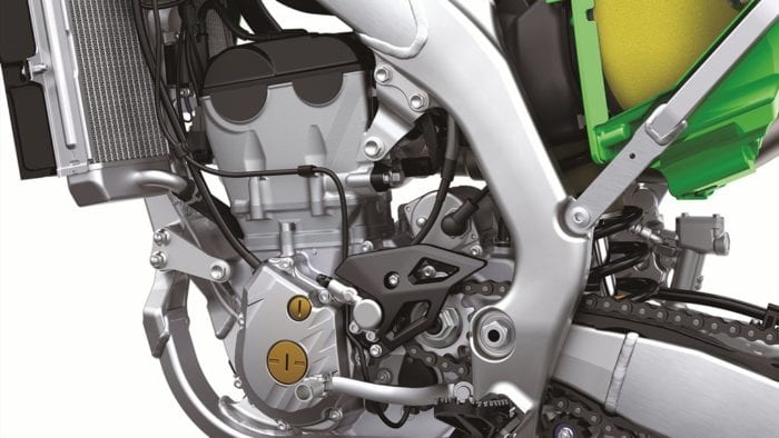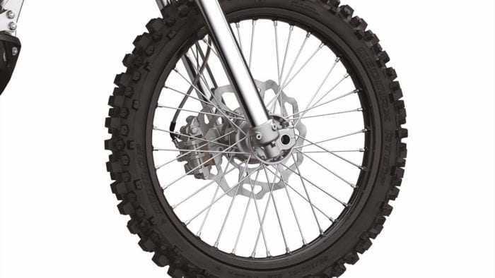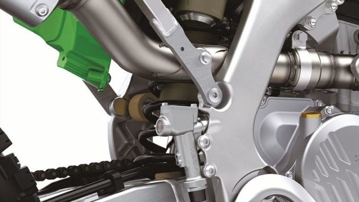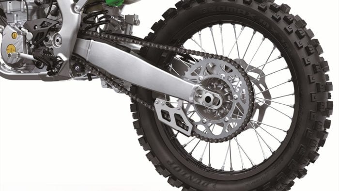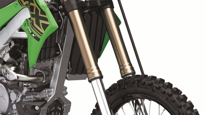 The Japanese company has made sure that the motorcycle comes ready for either form of competition, with fully-adjustable front and rear suspension, competition grade petal-disc style brakes, massive 13.2 inch ground clearance, and the exhaust routed up and under the tail to keep it safe from impacts. The KX250X also has a thicker bash plate under the engine, and a slightly wider rear tire to provide better grip in cases of doing hill scrambles or rock crawls.