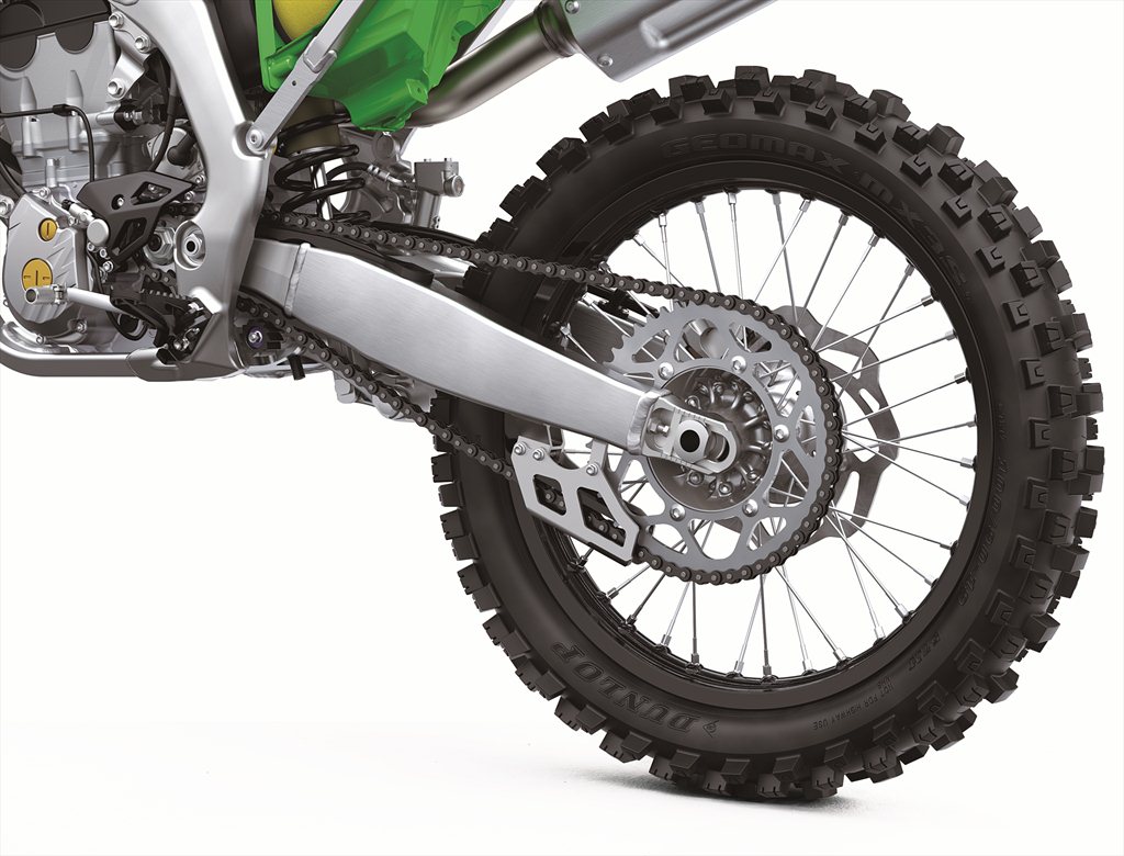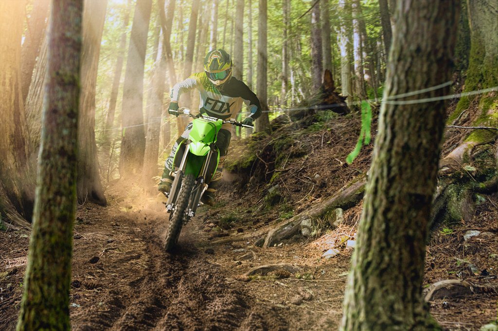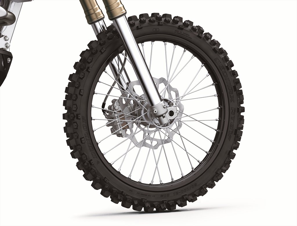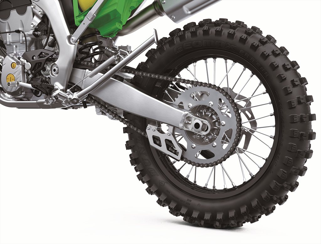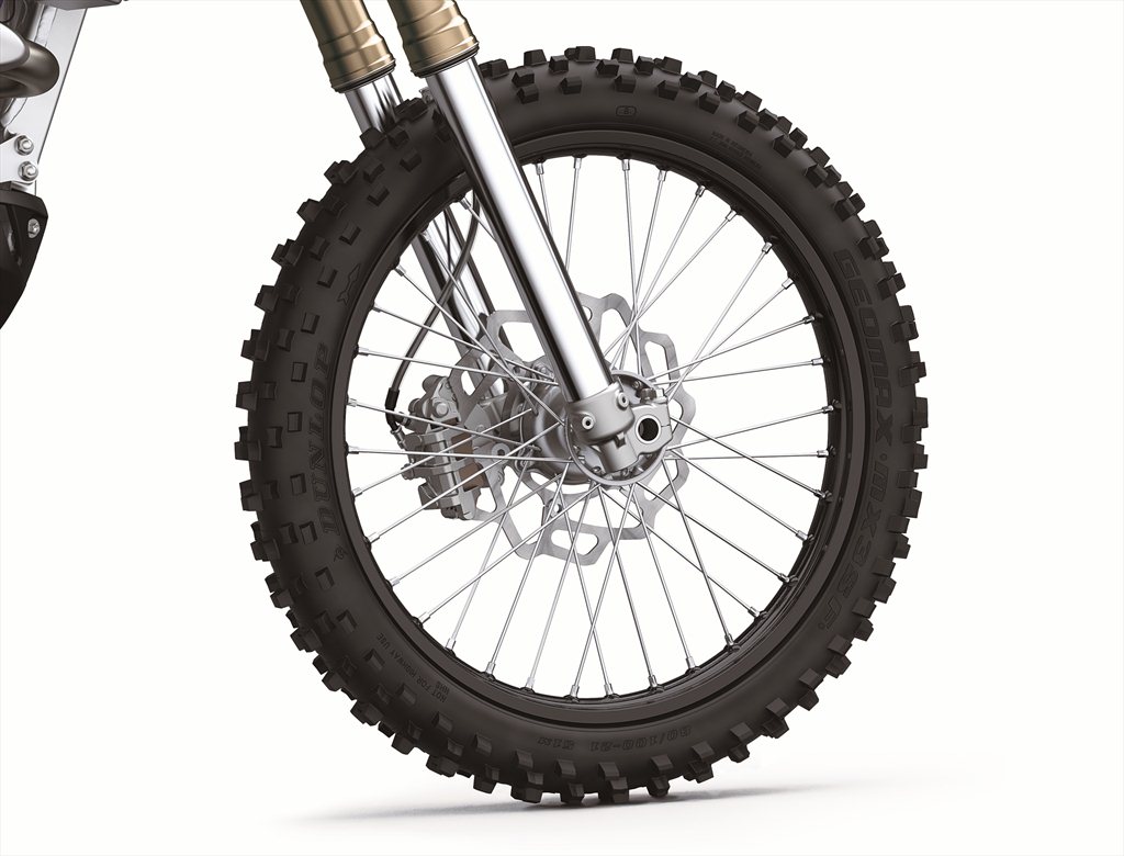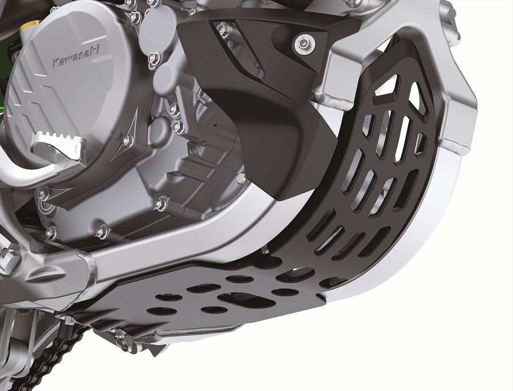 The Japanese company has made sure that the motorcycle comes ready for either form of competition, with fully-adjustable front and rear suspension, competition grade petal-disc style brakes, massive 13.2 inch ground clearance, and the exhaust routed up and under the tail to keep it safe from impacts. The KX250X also has a thicker bash plate under the engine, and a slightly wider rear tire to provide better grip in cases of doing hill scrambles or rock crawls.