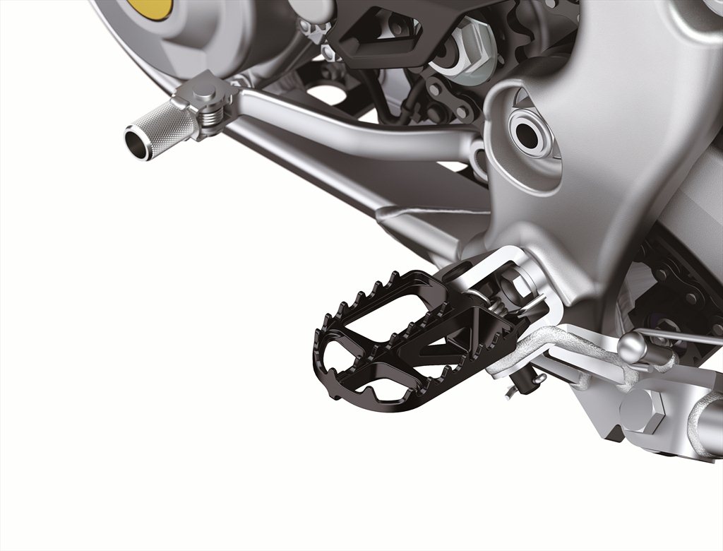 ERGO-FIT® is an interface system designed to allow riders to find their ideal riding position. Various points of the chassis interface (the handlebar, footpegs and seat, etc.) can be adjusted through a combination of interchangeable parts and parts with adjustable positions. This enables a wide range of riders to find a riding position that offers both comfort and control. Feeling at one with their machine, they will be able to experience how Kawasaki machines are fun and rewarding to ride.