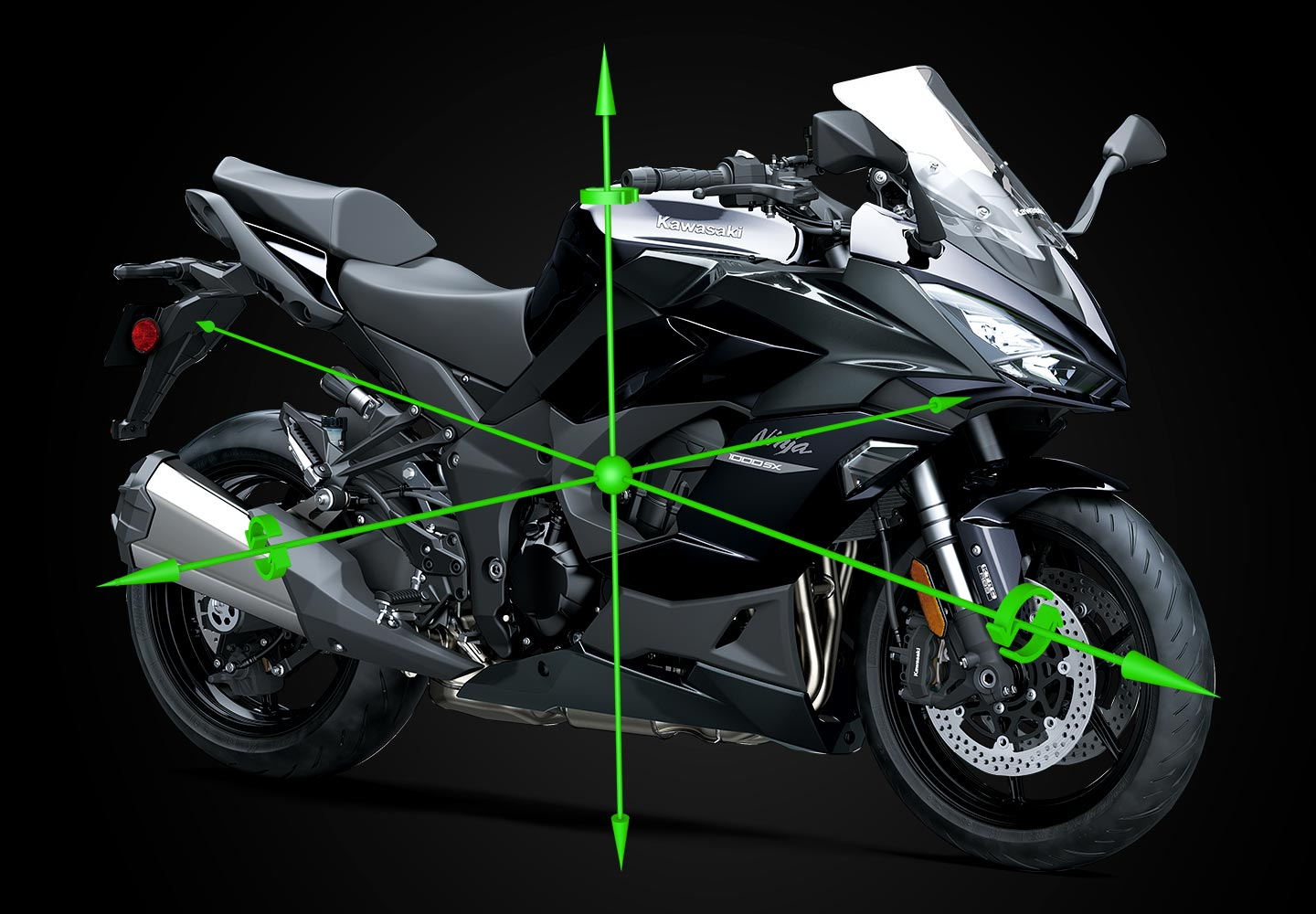 Using the latest evolution of Kawasaki’s advanced modeling software and feedback from a compact IMU (Inertial Measurement Unit) that gives an even clearer real-time picture of chassis orientation, KCMF monitors engine and chassis parameters throughout the corner – from entry, through the apex, to corner exit – modulating brake force and engine power to facilitate smooth transition from acceleration to braking and back again, and to assist riders in tracing their intended line through the corner. The systems that KCMF oversees vary by model, but may include: