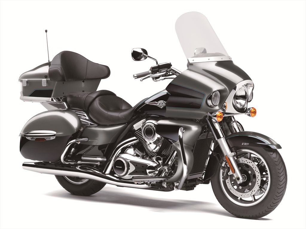 Kawasaki did not skimp at all for their top model. Electronic cruise control, dual-zone ABS with unified braking, wide-band radio built in along with AM/FM and optional satellite radio, integrated rear hard-case luggage compartment with integrated pillion seat, and a full set of aerodynamic fairings and windshield. As well, the Voyager has multiple options for adding hard case saddlebags, grip heaters, seat heaters, and a variety of other touring necessities.
