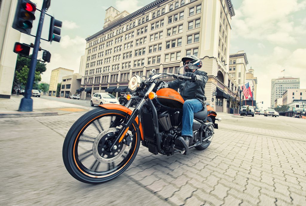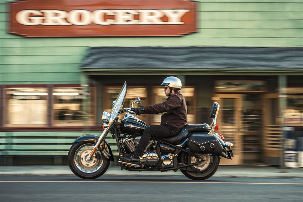 The 900 Custom is where Kawasaki designers and engineers took a bit of liberty to have a little fun. Low and pulled back drag bars give the bike a more aggressive look, as do the forward mounted pegs replacing the floorboards. The bike also gets a set of loud, parallel slash-cut exhaust pipes in matte black, and pinstripe wheels. It also gets a classic American teardrop tank.