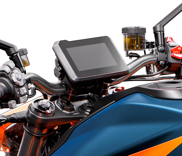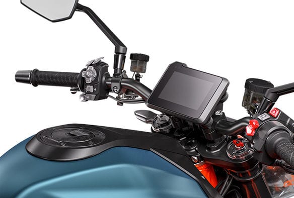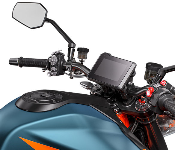 And, as KTM simply wants to get you onto the bike and riding, it uses a proximity card as the key, instead of a physical key. All you need to do is straddle the bike with the card in your pocket, and the bike will wake up as it detects itself supporting some weight, and off you go from there.