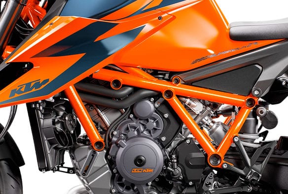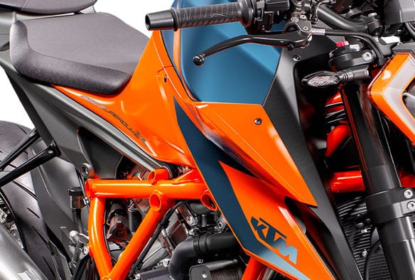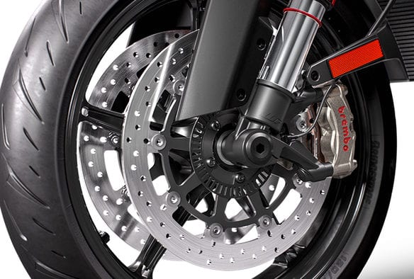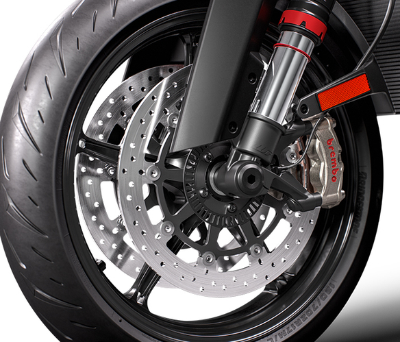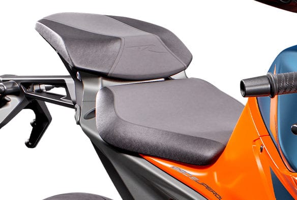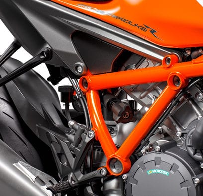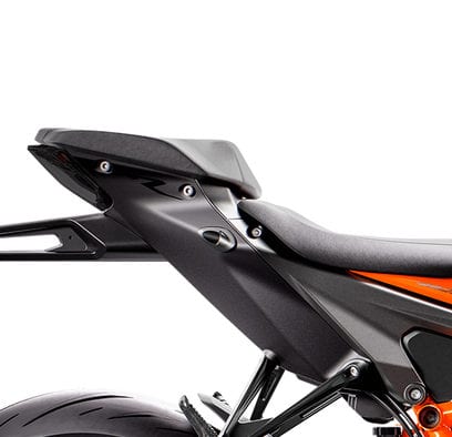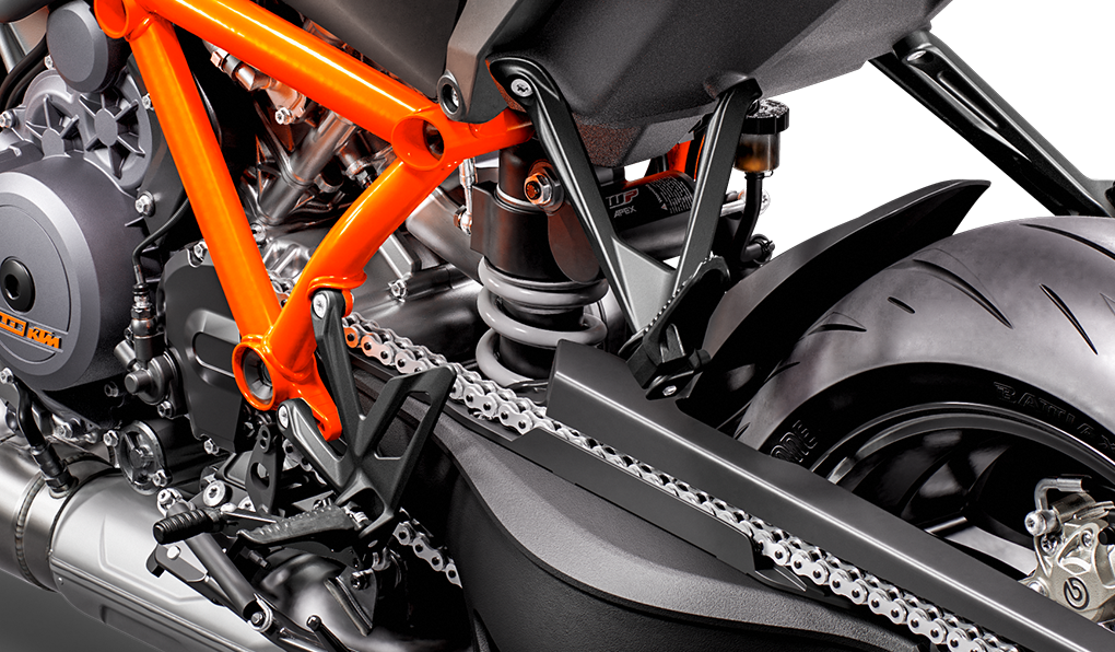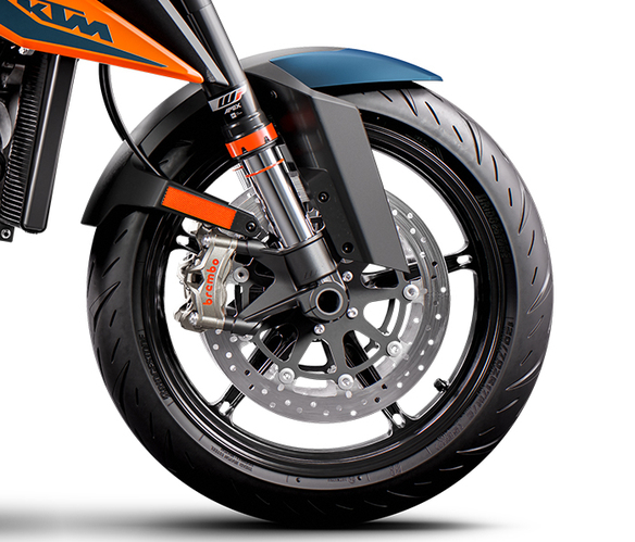The Austrian company recognizes that if you’re going to be going that fast, you need some serious gear to slow down with. KTM shows that they understand by fitting twin 320 mm floating disc Brembo brakes at the front, with 4 piston calipers. The rear is handled by a 240 mm disc with a two piston caliper. These are a special part developed with cooperation from Brembo, one of KTM’s racing partners, and are the biggest brakes fitted to a KTM road bike.