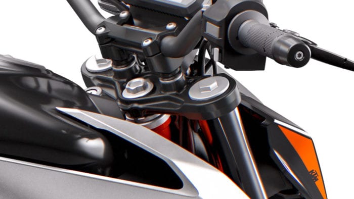 The KTM 390 DUKE comes as standard with ultra-lightweight, high-performance upside-down WP forks. Using the latest open-cartridge technology, these forks not only perform above expectations when pushed to the limits, but are also nice and easy to maintain. This makes them perfect for all aspects of riding, from relaxed cruising to hammering around on closed circuits and everything in between.