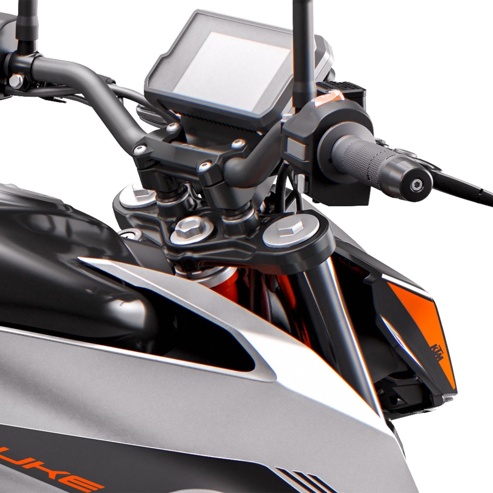 Hi-tech upright handlebars offer KTM 390 DUKE riders a controlled yet aggressive body position, allowing you to dominate in all aspects of riding. From destroying corners to pulling the perfect stoppie, these bars will give you the balance and confidence you need to attack the road like never before. Clutch and brake levers are fully adjustable, allowing you to customize your cockpit to suit your individual riding style.