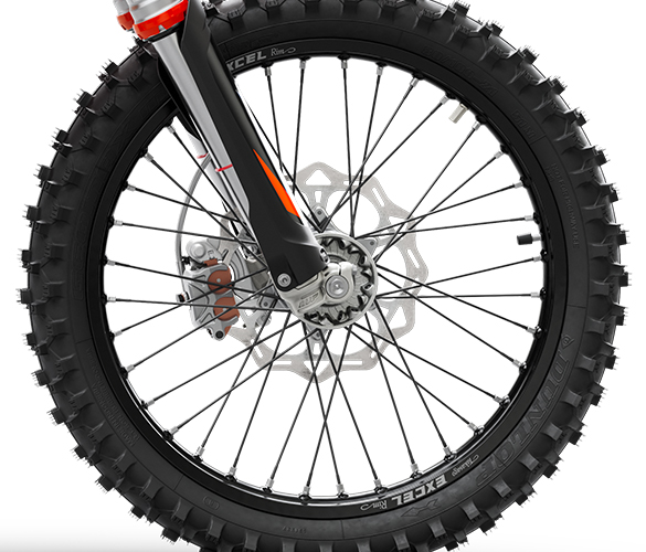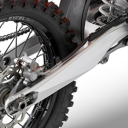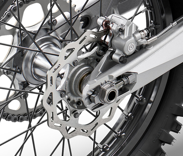 WP suspension is standard, of course. Brembo brakes and hydraulics are also par for the course. The biggest change the 450 SX-F sees is that its front brake is a whopping 260mm disc, compared to the 220 to 230 mm discs on lower spec models.