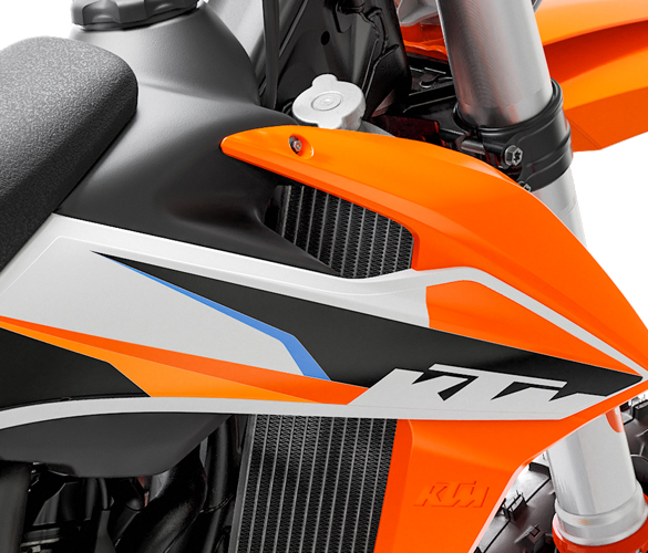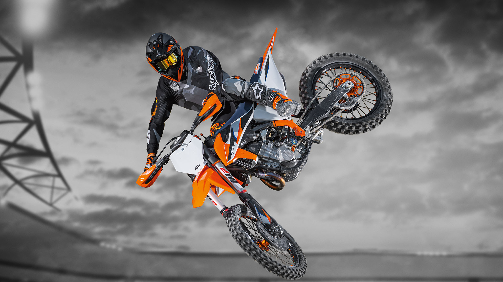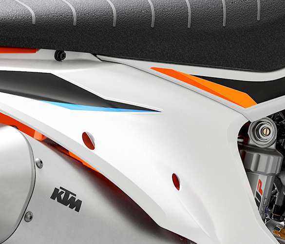 There is also a 450 SX-F Factory Edition, which adds an Akrapovič titanium exhaust, a racing connectivity unit to review laps, KTM factory competition wheels, a carbon-composite skid plate, a semi-floating front brake disc, and a full Red Bull Racing graphics kit. It also features the same Hinson clutch that the KTM Dakar Racing Team use on their 450 Enduro bikes, meaning endurance and race proven clutch feel.