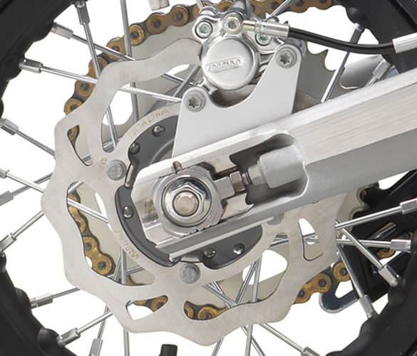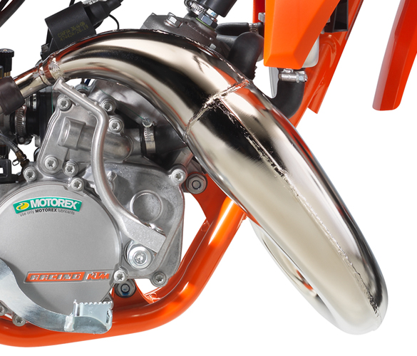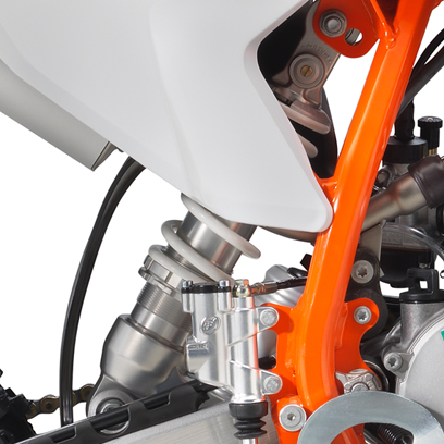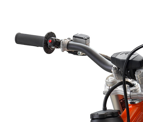 KTM, with its Motocross experience, doesn’t shy away from racing parts on the other two models, however. All three are equipped with WP XAct suspension front and rear, as well as full disc brakes front and rear. Where the Factory Edition differs is in the exhaust, made by FNF Racing, the tires, being race-proven Dunlop Geomax MX 53’s, and by having a clutch lever, which is attached to a single-speed automatic transmission, but allows the rider to determine when it engages.