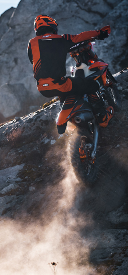 It’s a go-anywhere-do-anything dual-sport that will be at home either on or off the road. Add in the fact that it is compact and light, but not ridiculously so, and you can also park it in the garage next to your car or other KTM bikes!