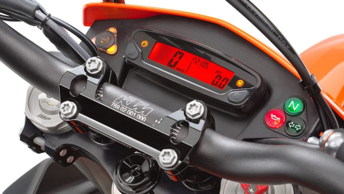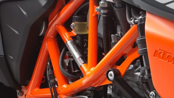 This could be seen as the Austrian company flexing its muscles in engine knowledge, as it also has built-in balancer shafts on both the crankshaft and the cylinder head to reduce overall vibration. It also has developed a lightweight piston head and conrod, to reduce reciprocating mass and improve response. On top of that, KTM has developed a superb engine management and injection system, combined with dual spark plugs, to ensure the most efficient and complete combustion possible in the cylinder.