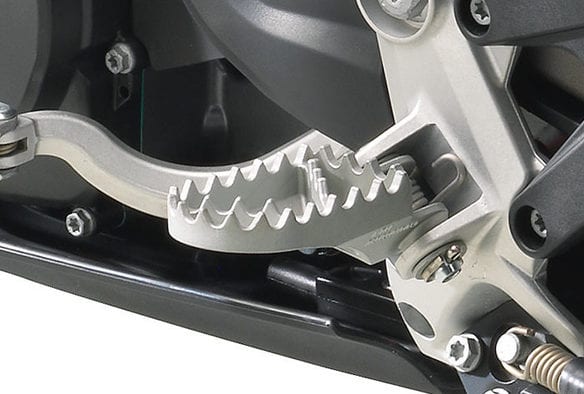 - Dual-zone ABS with cornering control (street mode), front-wheel-only ABS (off-road mode)