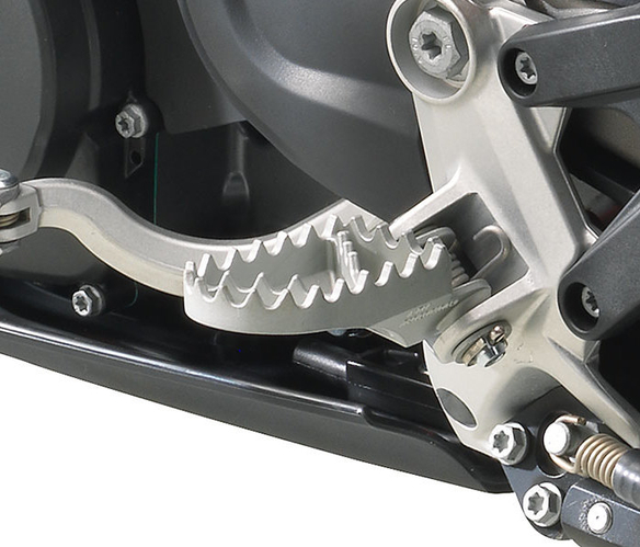 - Dual-zone ABS with cornering control (street mode), front-wheel-only ABS (off-road mode)