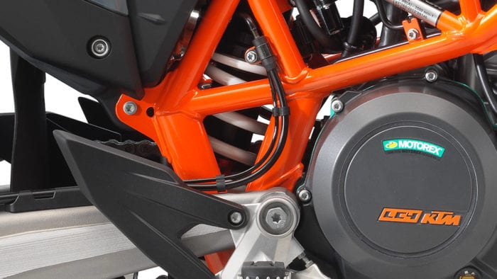 This is because the Austrian company has designed the engine to be smooth and responsive, without vibrating the bike too much. WP APEX motorsports-grade suspension also ensures that when you do want your tires to be in contact with the road, they are firmly so, without jolting too harshly. The frame is also designed to be torsionally rigid, but be able to help absorb longitudinal energy, helping the suspension soak up those same bumps.