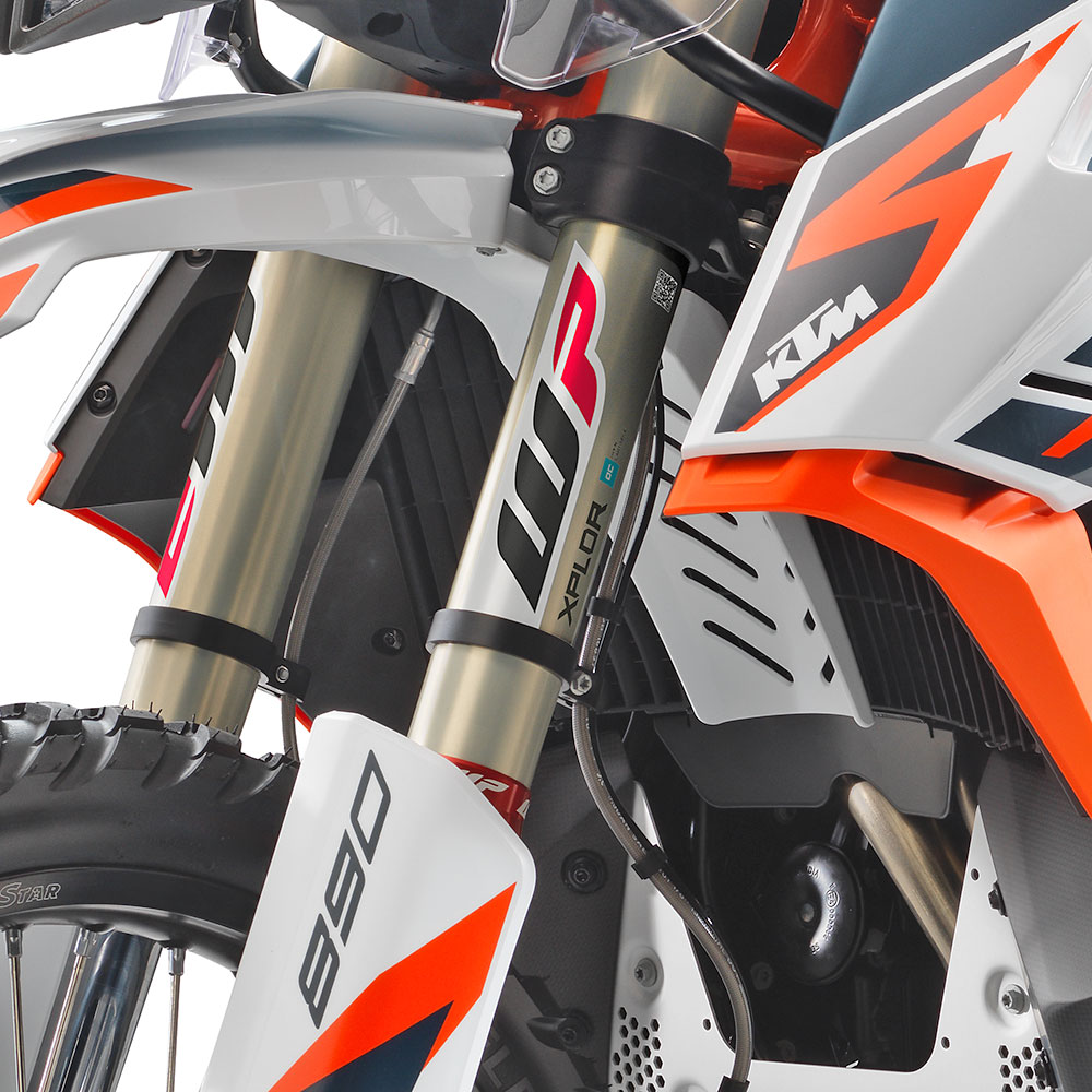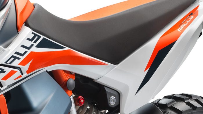 Other limited edition parts include carbon fiber tank protectors and rally footrests, KTM’s Quickshifter+ system as standard, a full enduro racing style seat, and lower front fork suspension guards.