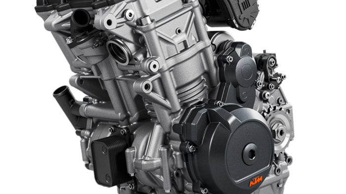 KTM Motorcycle’s 890 Adventure is powered by an 889cc liquid cooled, 8 valve parallel twin engine boasting 105 HP and 73 lb-ft of torque. This is a completely different engine than what was in last year’s 790 Adventure, with new piston heads, balancers, springs, valves, intakes… the works. It is cradled in, and attached to as a stressed member, a lightweight but extremely strong chromoly steel frame. This allows the power delivery to be responsive and immediate, while allowing the torque to be linear-but-urgent, which can be needed in certain off-road situations.