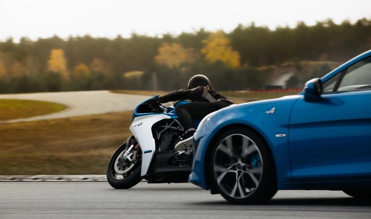 Pirelli, as the official tire supplier for both Formula 1 and MotoGP, puts Diablo Rosso Corsa II super-sticky rubber on both aluminum alloy wheels. As well, MV Agusta, with cooperation from Alpine, has upgraded their MV EAS (Electronically Assisted Shifting) quickshifter to version 3.0, and the Superveloce 800 Alpine will be the first bike in MV Agusta’s lineup to carry it.