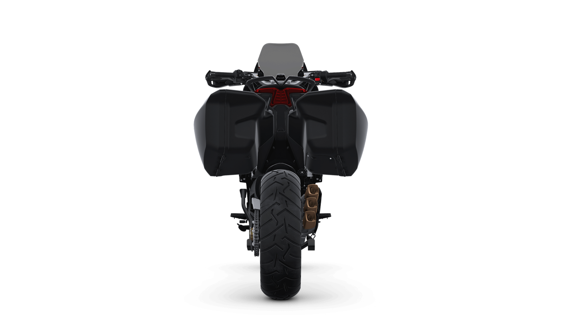 While the Rosso is meant for the city streets, the Lusso (literally: “Luxury”) is all about long distance sports touring in enormous comfort, with all the tech and safety systems you need along the way. The bike comes equipped with removable saddlebags, a thicker seat and pillion cushion, and a dynamic suspension system that is semi-adjustable and adjusted automatically as you ride by the chassis dynamic stability system.