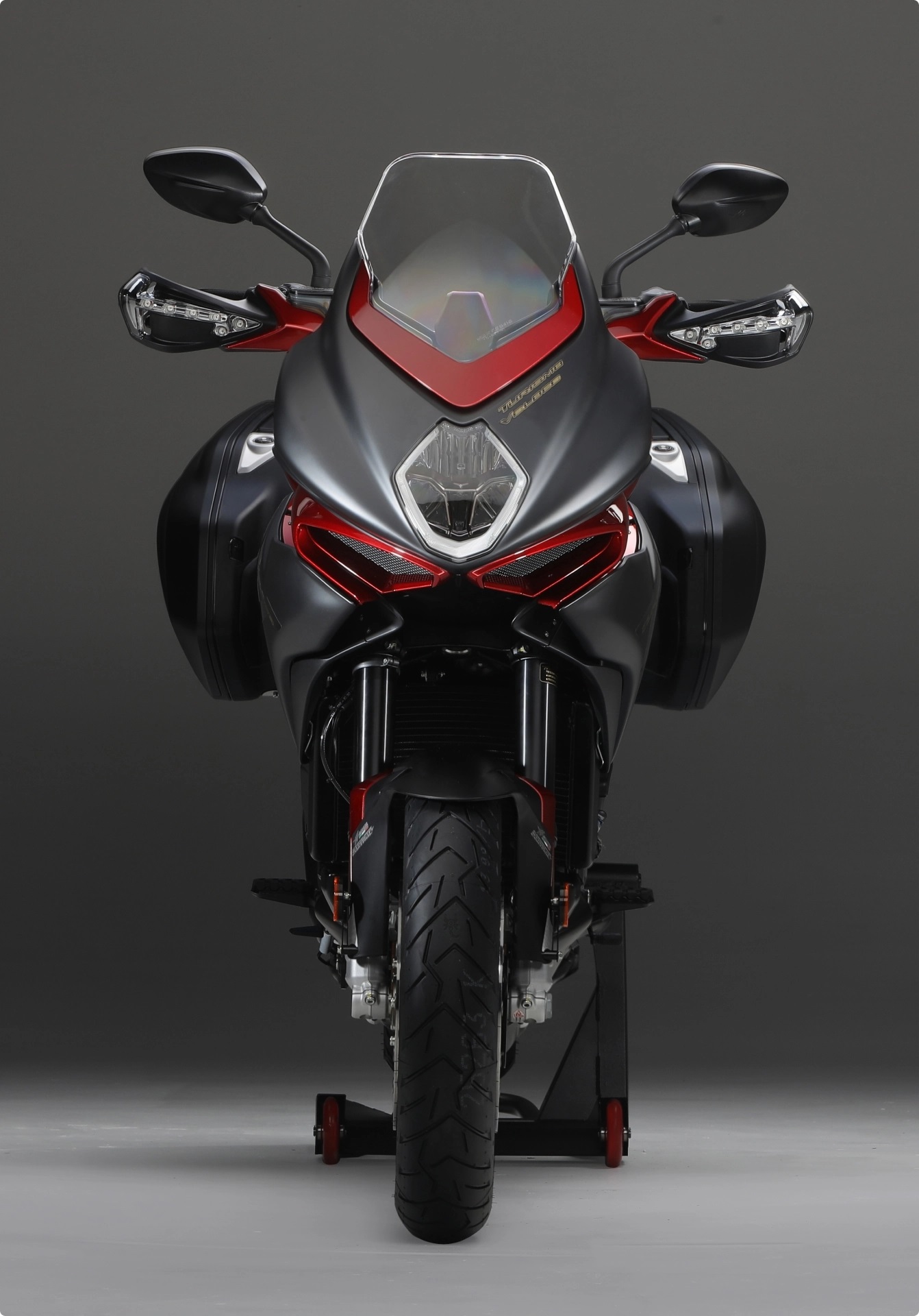 | Suspension Front | Sachs “UPSIDE DOWN” semi-active telescopic hydraulic fork MVCSC (MV Agusta Chassis Stability Control) | |