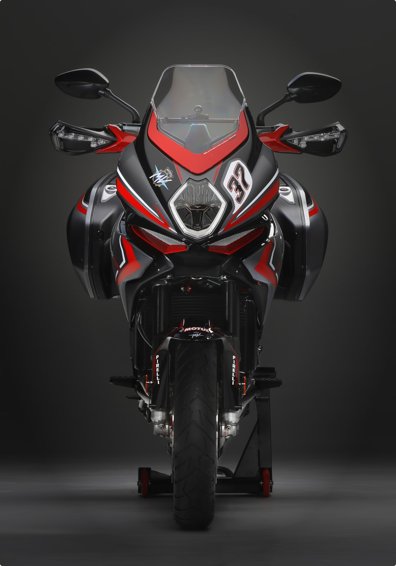 | Suspension Front | Sachs “UPSIDE DOWN” semi-active telescopic hydraulic fork MVCSC (MV Agusta Chassis Stability Control) | |