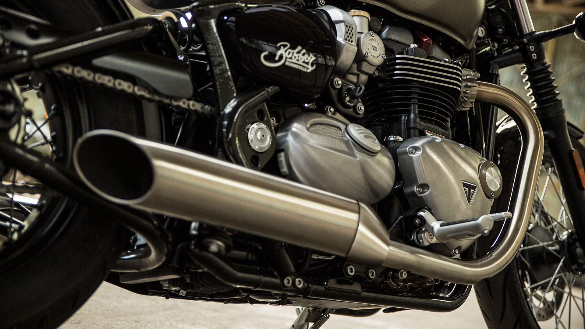 The 1200cc Bonneville engine’s short slash-cut twin silencers and unique twin airbox generate a head-turning distinctive deep raw tune that’s unique to the Bobbers. There’s a mean and aggressive growl to these motorcycles that perfectly reflects their rebellious attitude and unrivalled modern-day performance.