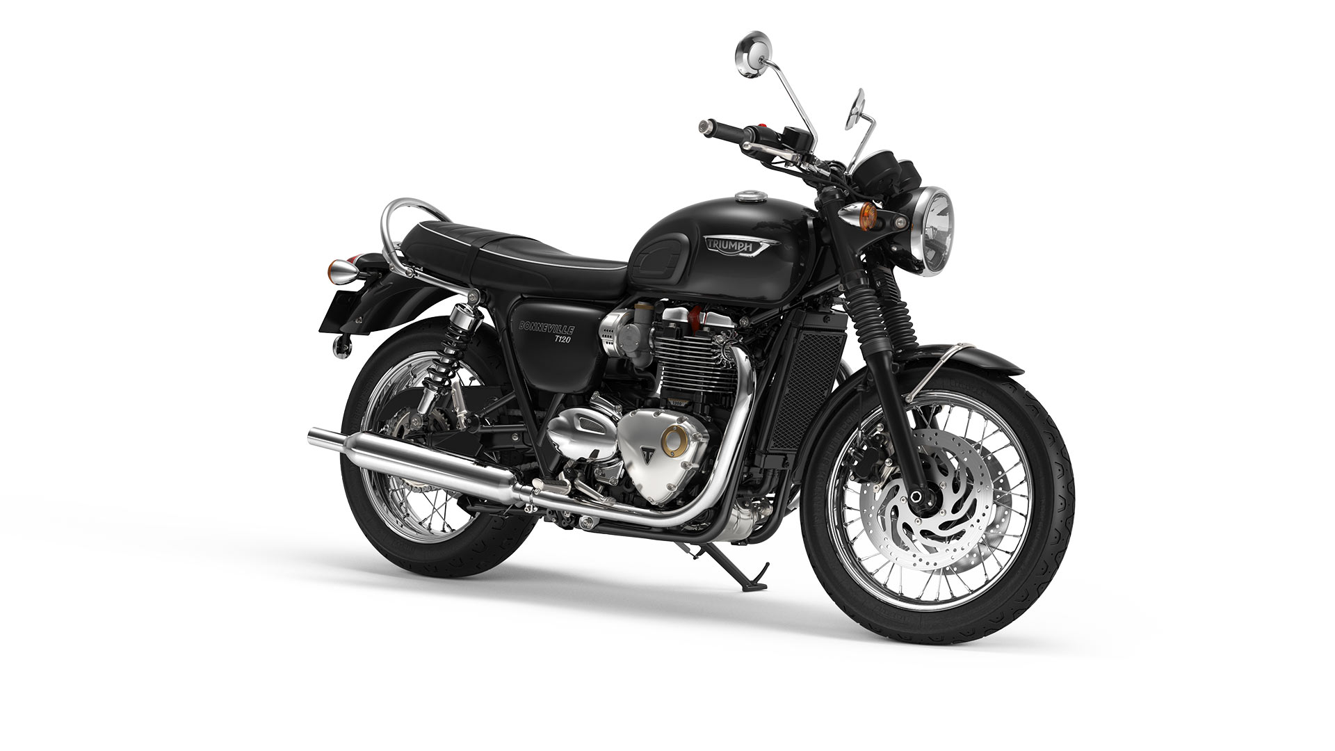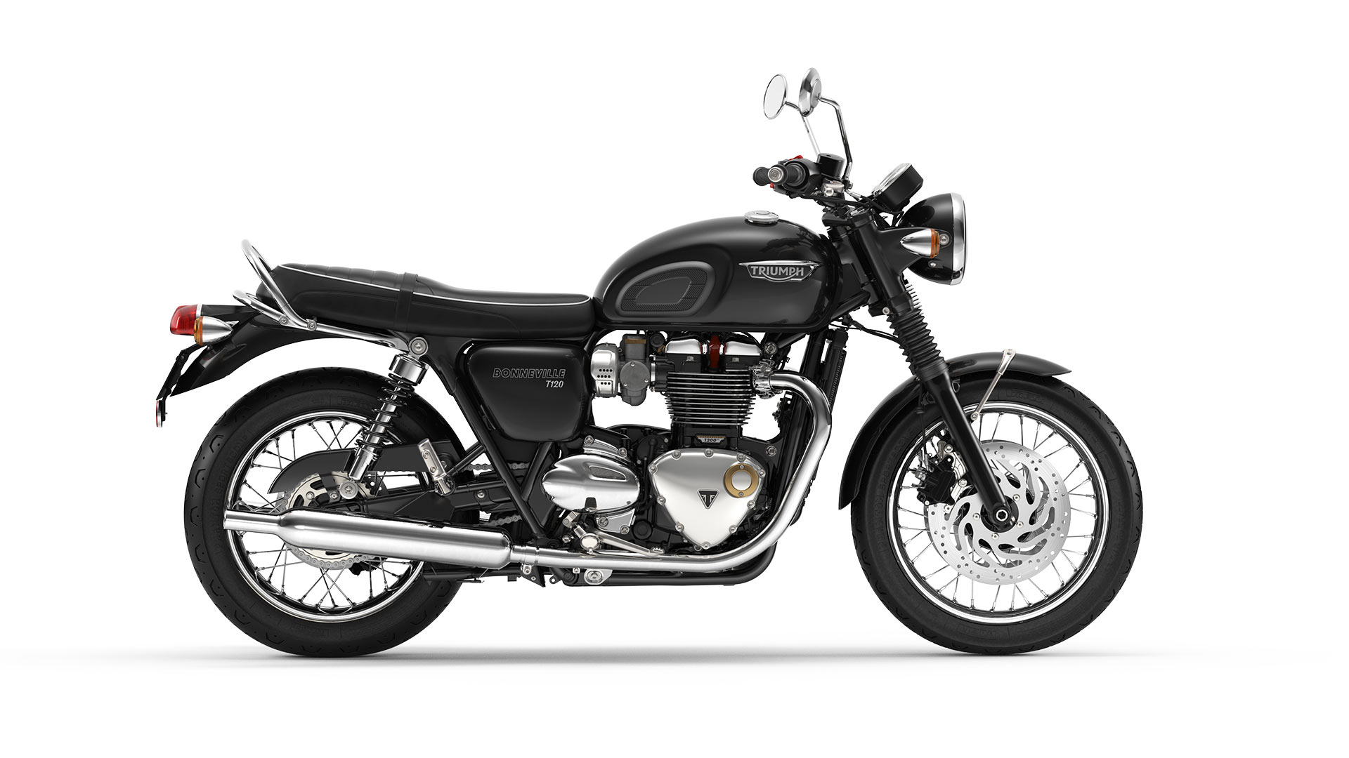 With all the character, detailing, and finish of the T120, the Bonneville T120 Black brings a meaner attitude with a sophisticated dark brown seat and all-black detailing, including rims, grab rail, exhaust, and engine finish. Available in 2 premium paint schemes, Jet Black or Matte Graphite, the Bonneville T120 Black is the new motorcycle style icon.