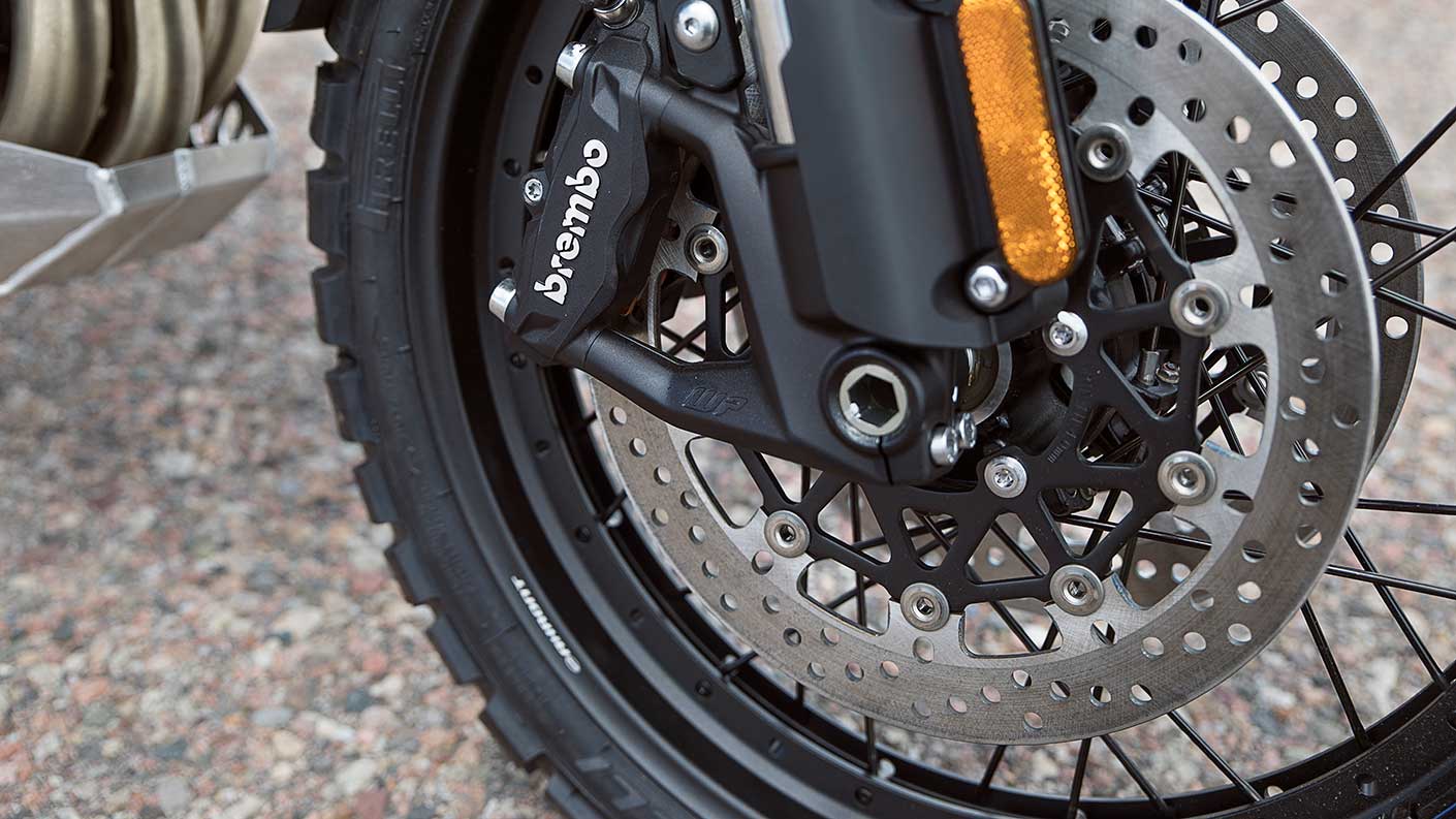 | Brakes Front | Twin 12 in (305 mm) floating discs, radially mounted monobloc Brembo 4-piston calipers, switchable ABS | |