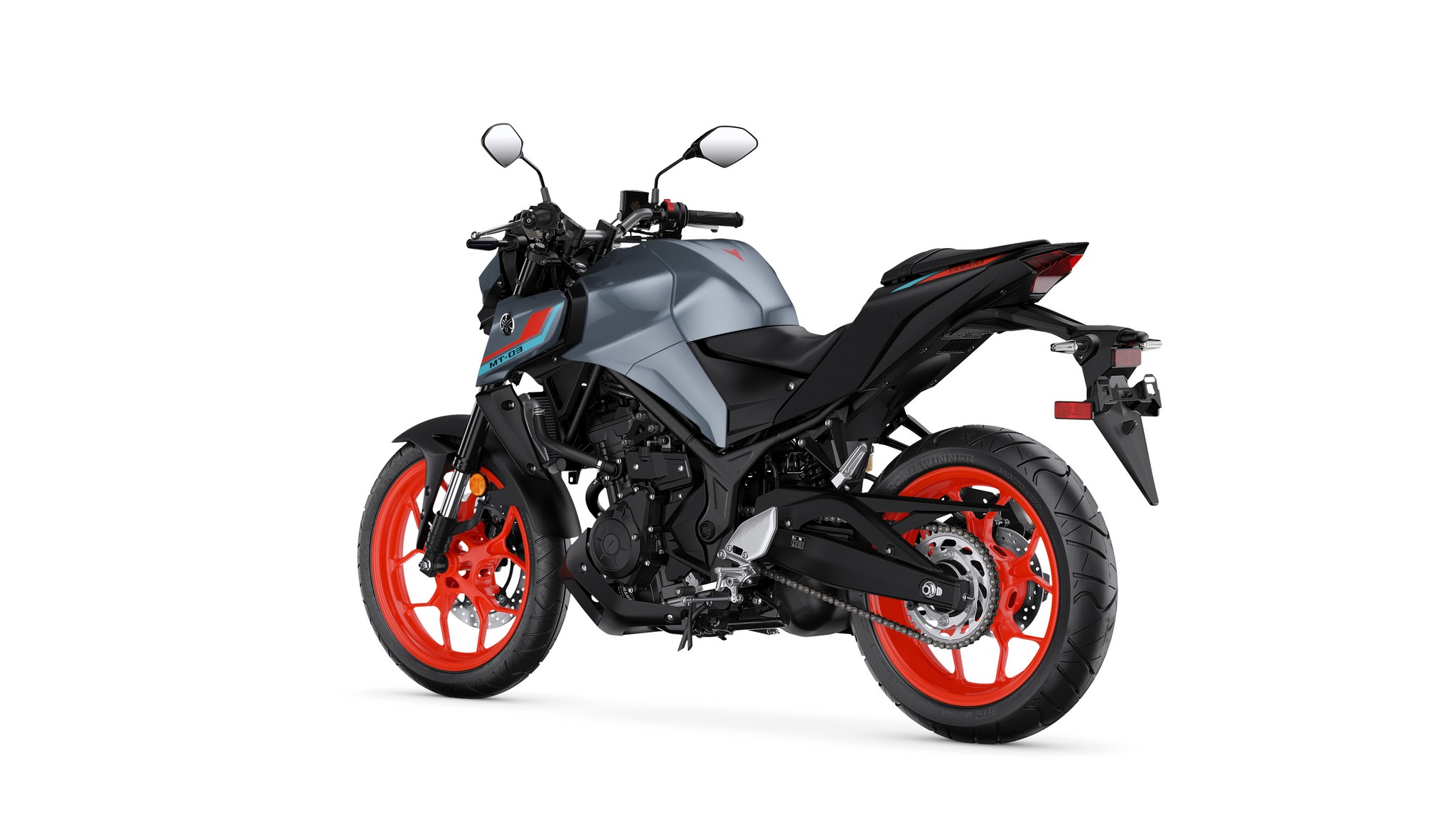 The MT-03 is equipped with a 22.6″ long asymmetrical swingarm that provides a planted ride during braking, cornering and acceleration.