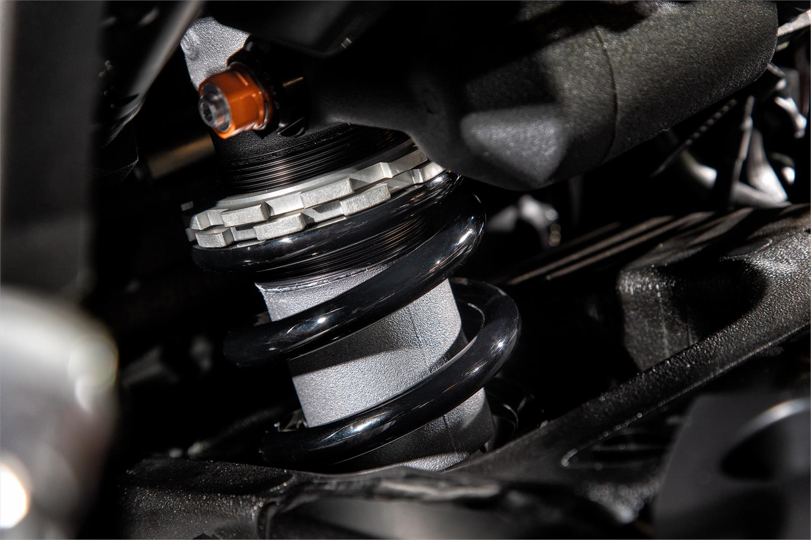 KYB® piggyback shock, fully adjustable; 4.7-in travel