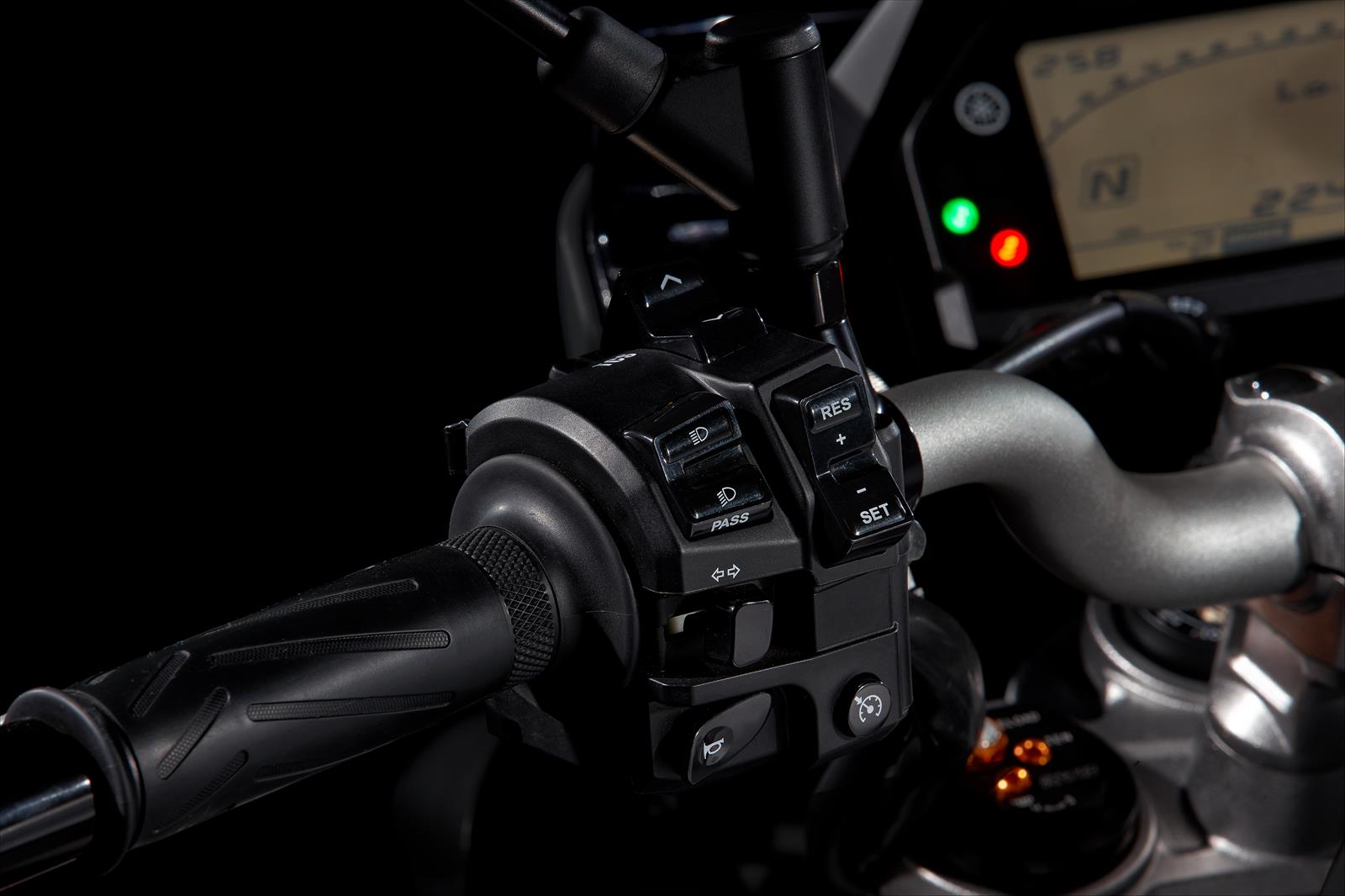 The MT-10 includes a cruise control system powered by the YCC-T. Using the left handlebar switchgear, the rider can easily select or adjust a set speed to ease long-distance touring on the highway, improving rider comfort.