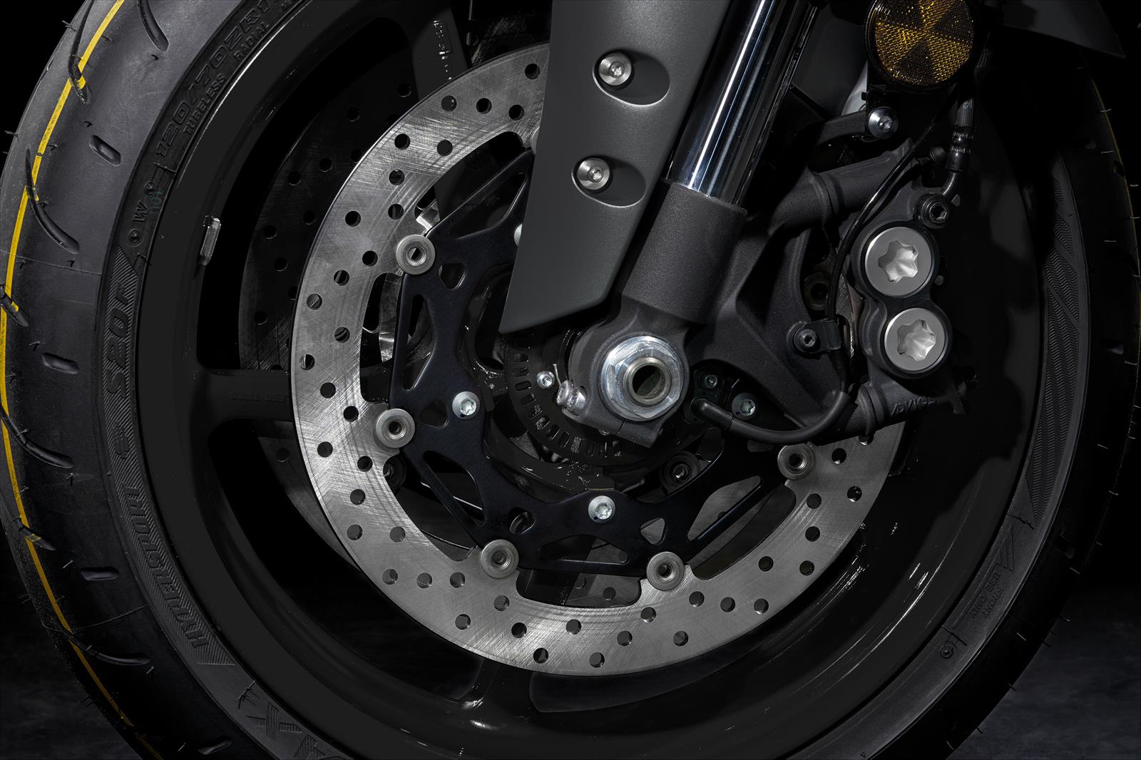 An advanced anti-lock braking system (ABS) is mated to high-specification braking components for strong braking power with excellent feedback and control.