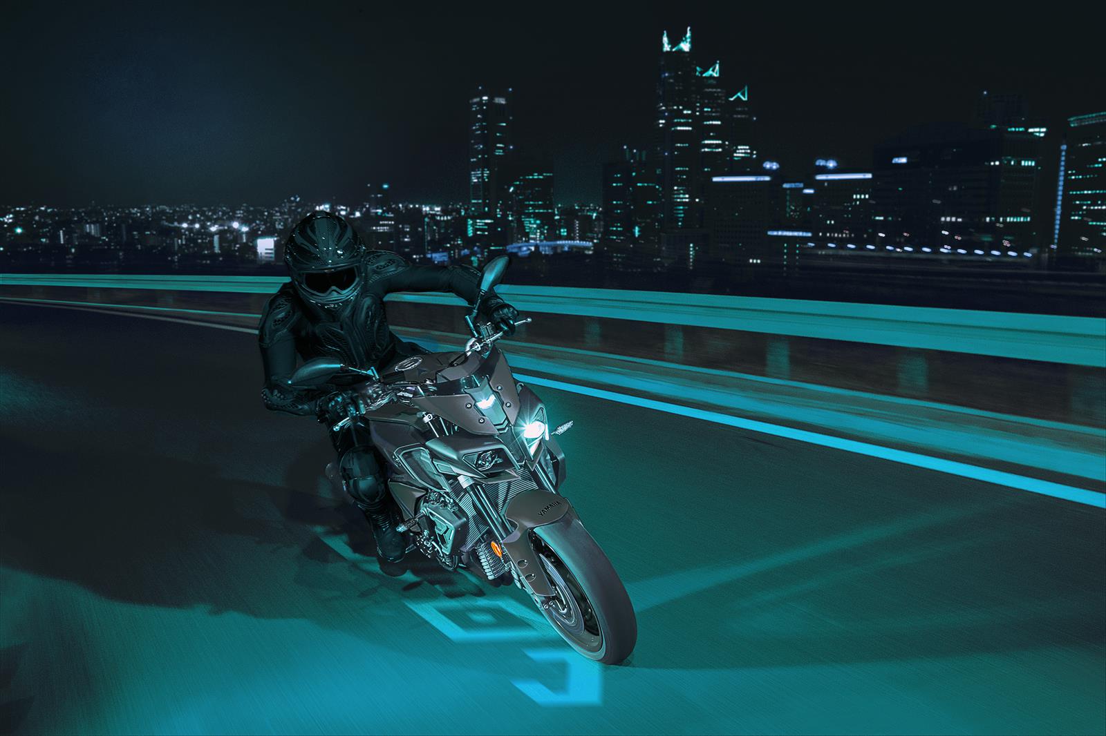 The potent 998cc inline 4-cylinder engine features the same Crossplane Crankshaft technology developed in Yamaha’s renowned YZF-R1® superbike. Tuned specifically for the MT-10™, this engine develops awesome low- and mid-rpm torque with arm-stretching top-end power.