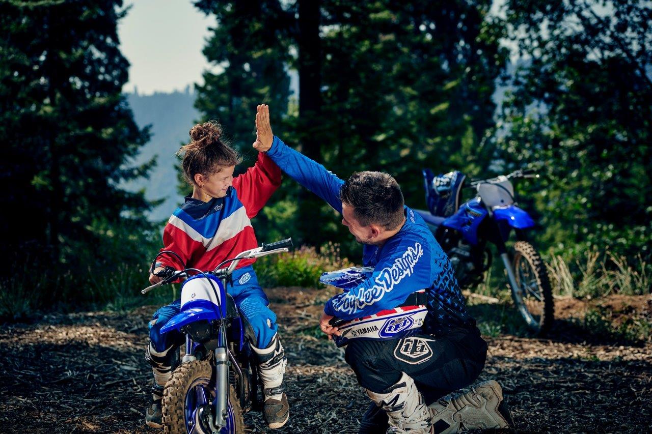Team Yamaha-inspired colors, graphics and front and side number plates create styling just like the bigger off-roaders.