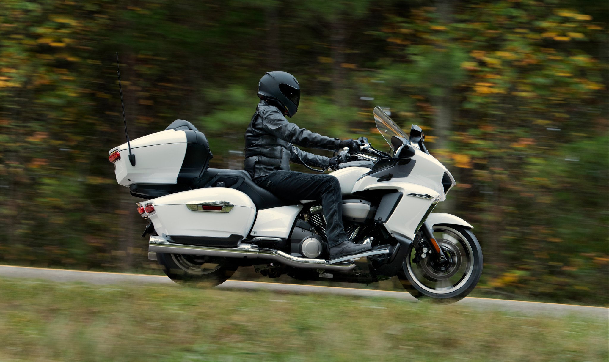 While a lot of motorcycles these days are meant either as in-city commuters, day-trip mile munchers, or on-road/off-road adventure and dual-sport bikes, there is the sector of the market that still wants to ride from New York to LA, then back again, just because it’s fun. For this type of rider, Yamaha has made the Star Venture TC. In fact, the TC in the name does not stand for Traction Control as many think. It stands for Trans-Continental. And with a 1,854cc (113 ci) V-Twin that chucks out just about 90 HP and 126 lb-ft of torque, it is ready to crush those miles.