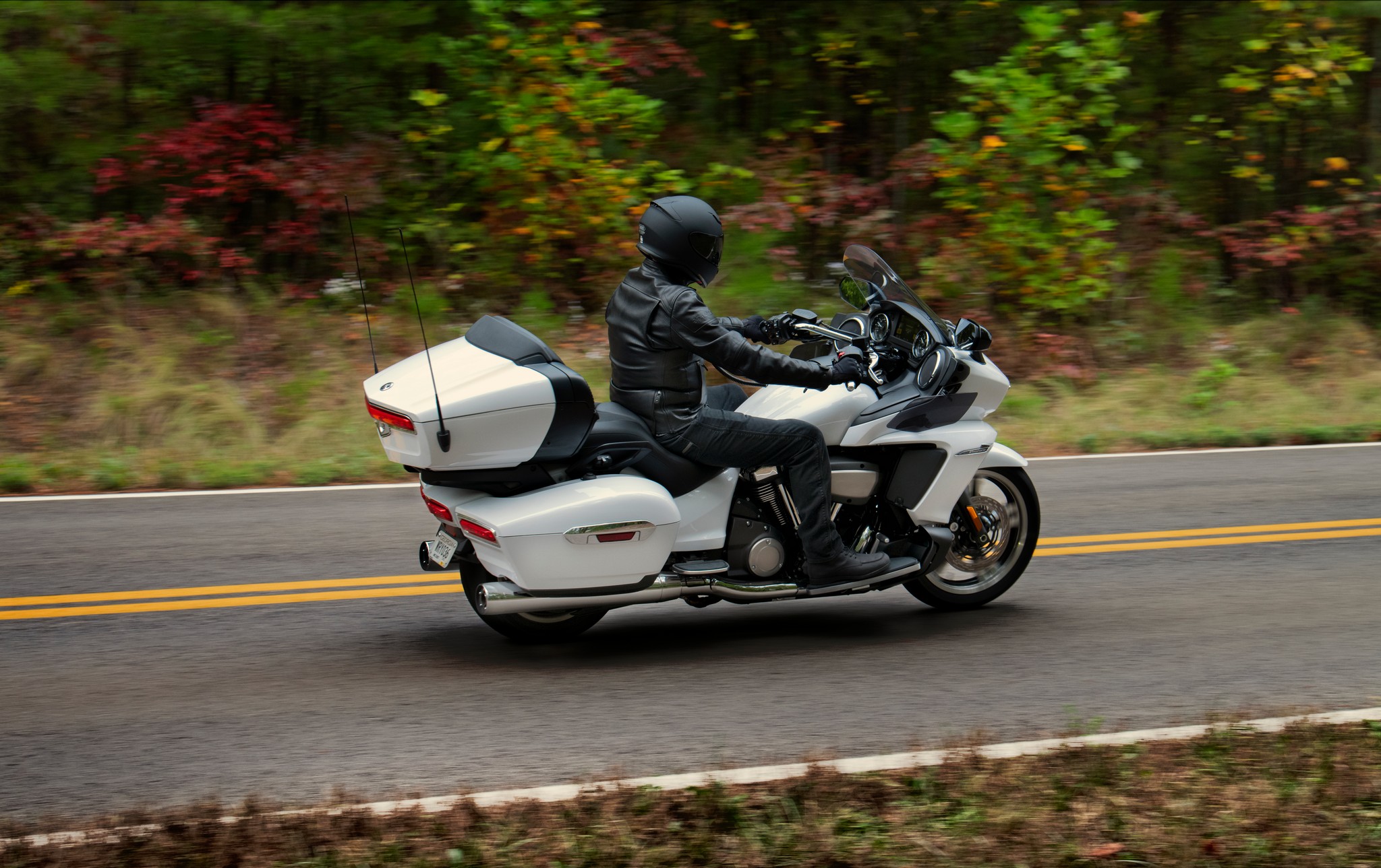 The Transcontinental Package’s features now come standard and includes supplemental LED fog lamps, an additional pair of storage compartments for the passenger, and an alarmed security system to keep your investment safe.