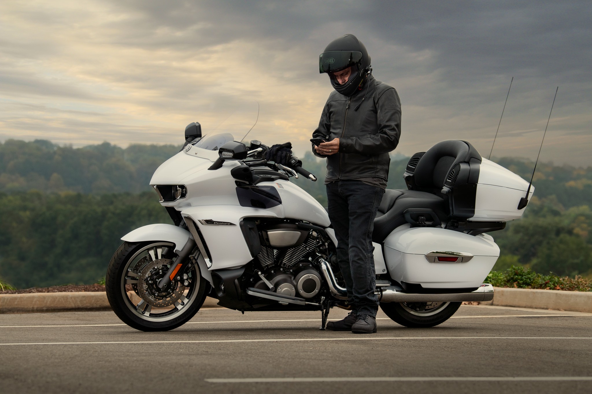 By linking a Bluetooth®-equipped smartphone, the Star Venture gives the rider complete control of communications with both the passenger and the wider world, directly through the infotainment display.