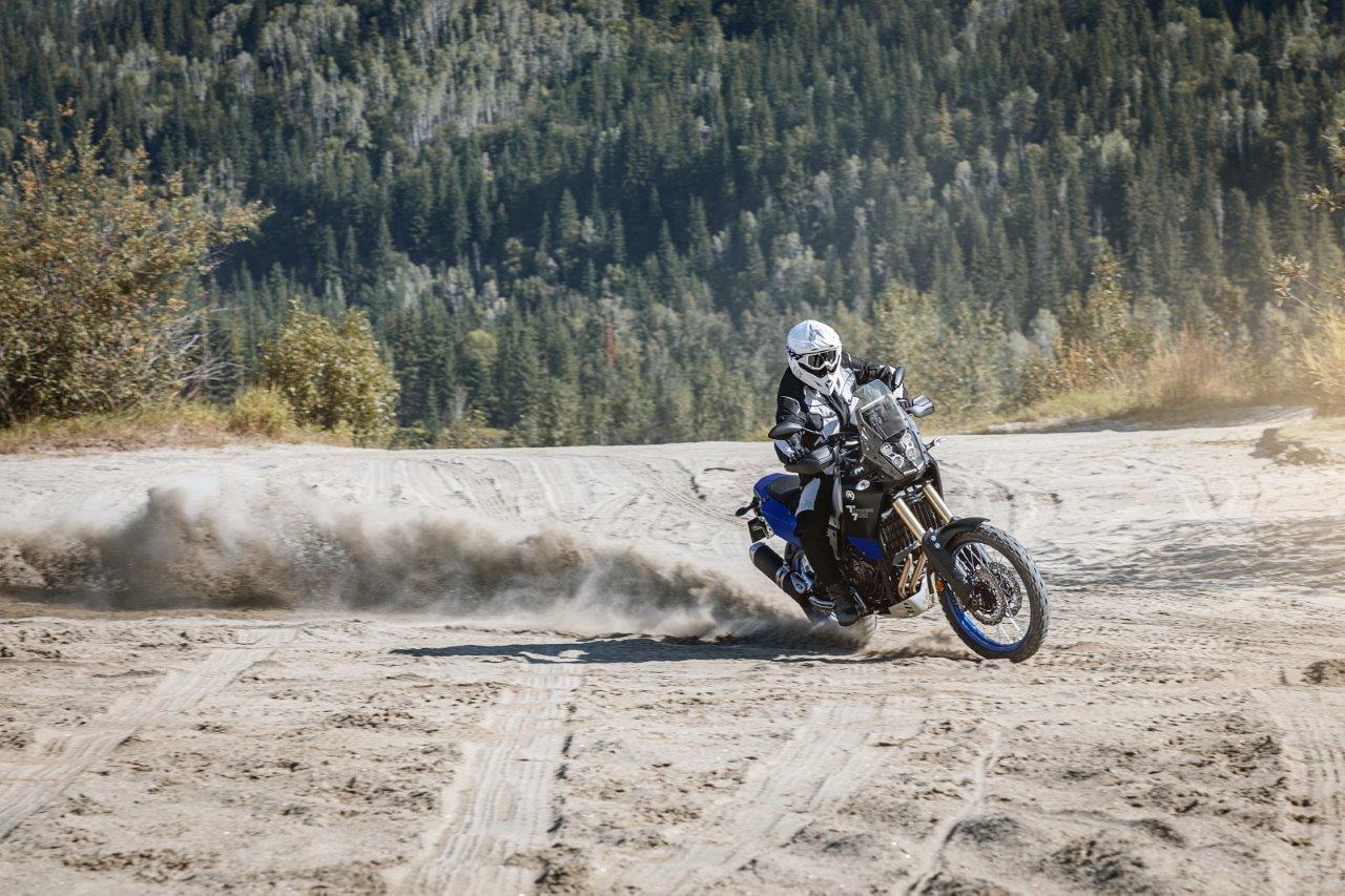 Part of the crash diet has been the stripping of pretty much anything that could be described as “in excess.” Multimode traction control? Gone. Electronically adjustable suspension? Gone. Hard side cases? Gone. What’s left is an adventure bike that, as even Yamaha puts it, a “lightweight, no-compromise dual-sport motorcycle.” As well, in true racing fashion, the only proper electronic rider air, ABS, can be turned completely and utterly off with the flick of a switch on the dash.