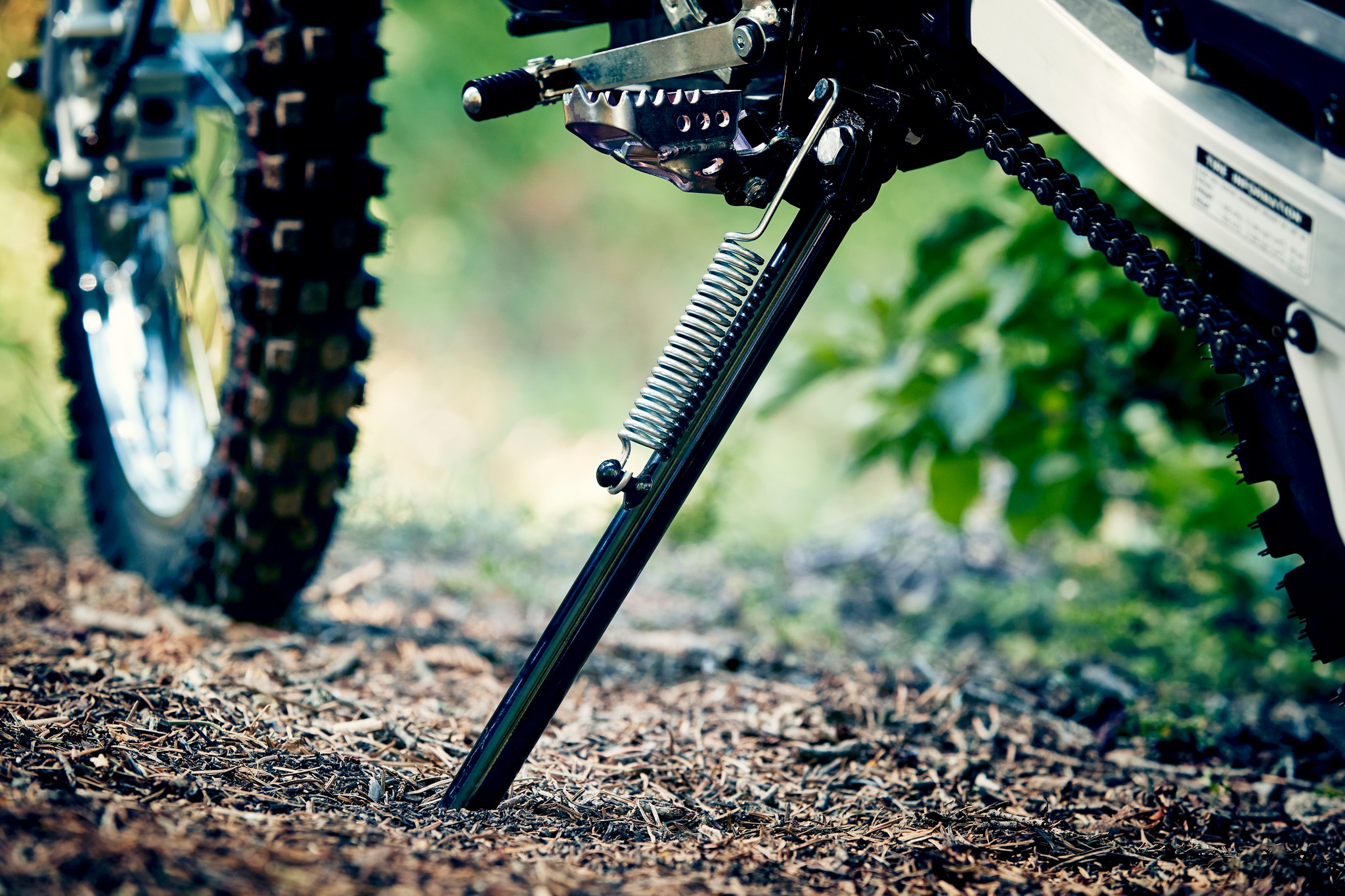 Large folding, cleated foot pegs provide excellent footing, even in wet or muddy conditions.