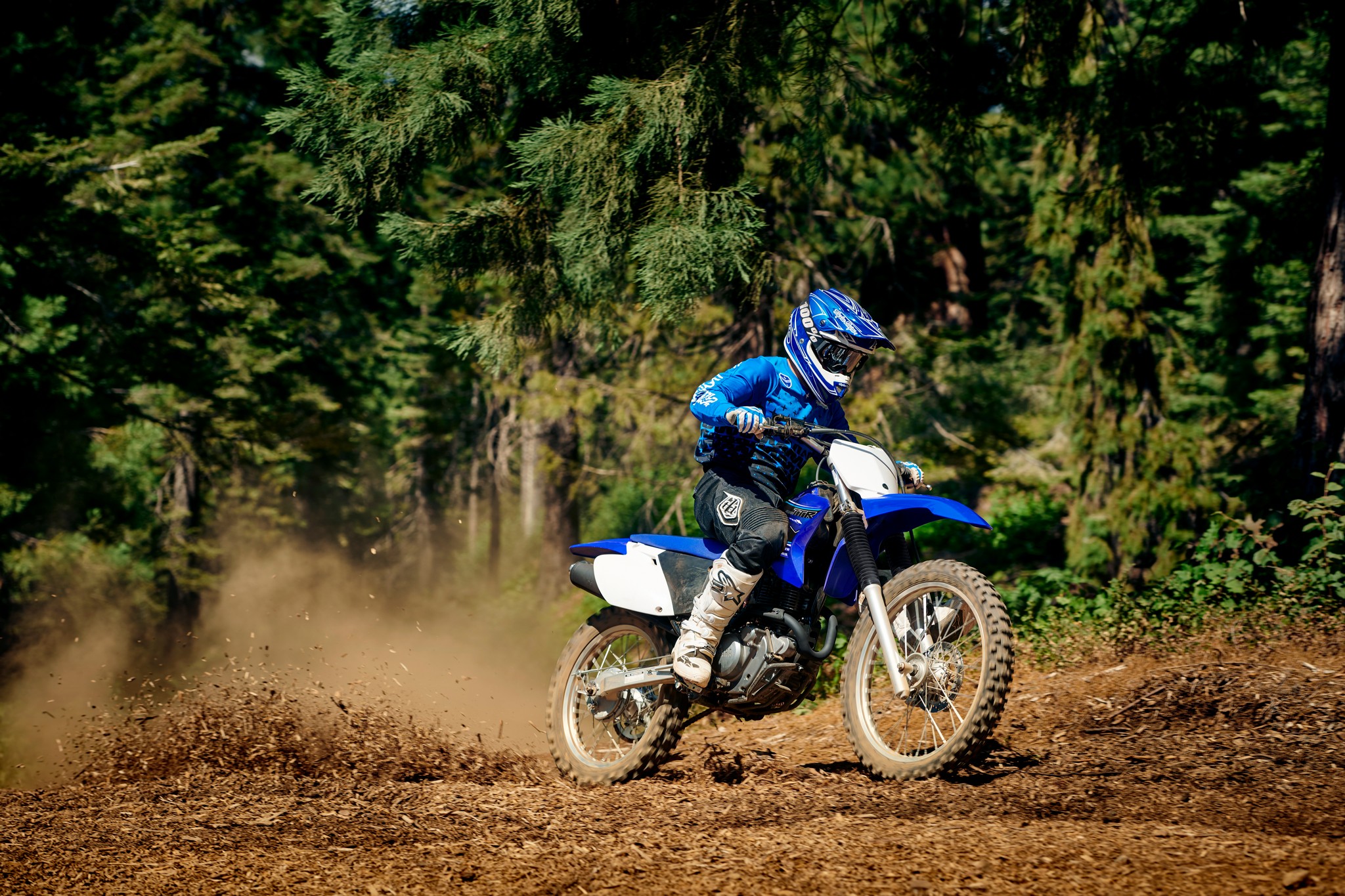 YZ-inspired looks with a stout 223cc air-cooled, SOHC four-stroke that produces predictable, broadband power make the TT-R230 a great choice for beginner and intermediate riders.
