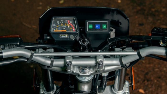 A speedometer with odometer and resettable trip meter as well as indicator lights for neutral and high beams plus turn signals come standard.