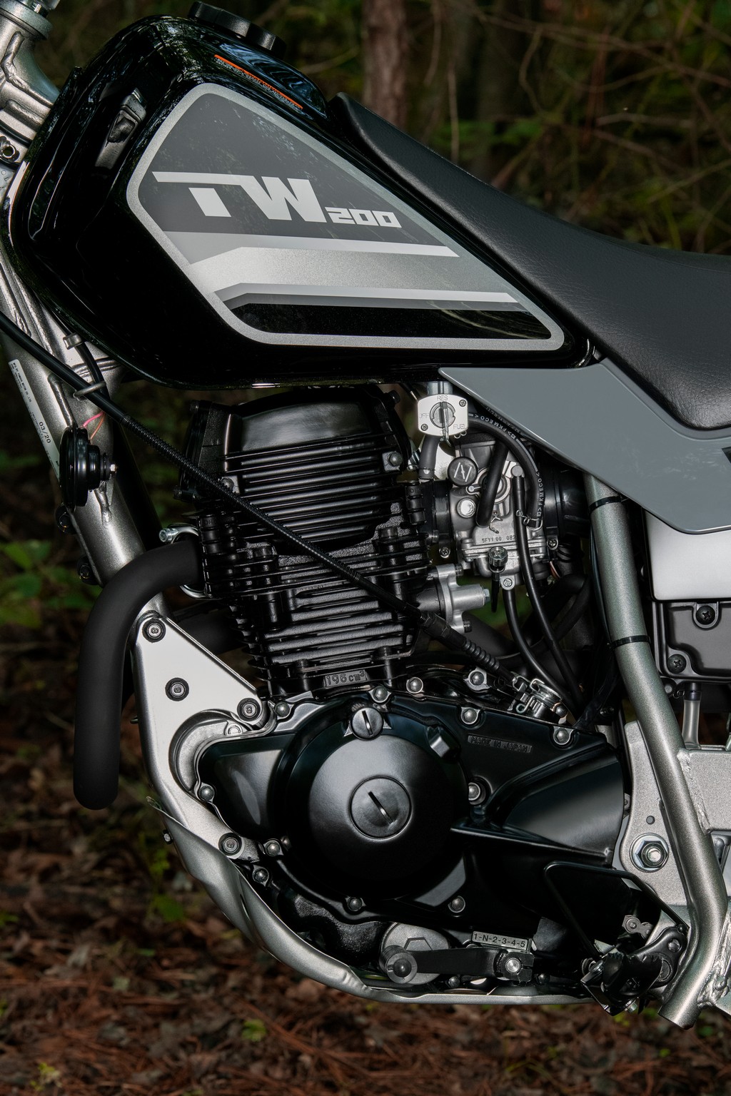 Big fat tires deliver great traction and rider comfort over a wide range of terrain, and they make the TW200 the most distinctive-looking, dual-purpose machine around.