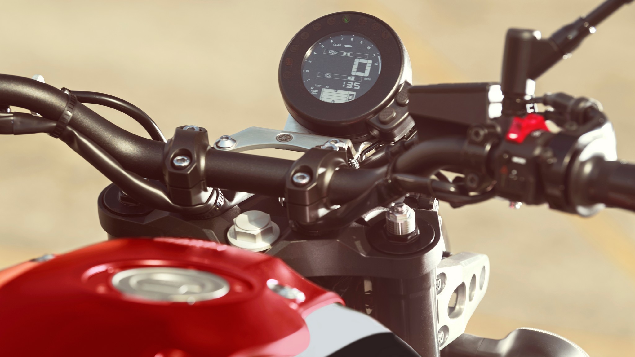 The XSR900’s Traction Control System lets the rider get on the gas with more confidence by regulating the bike’s ignition timing, fuel injection and throttle valve opening based on wheel speeds. Three modes are available: Mode “1” is for minimal intervention, Mode “2” is for maximum intervention, and “OFF” switches the system off entirely.